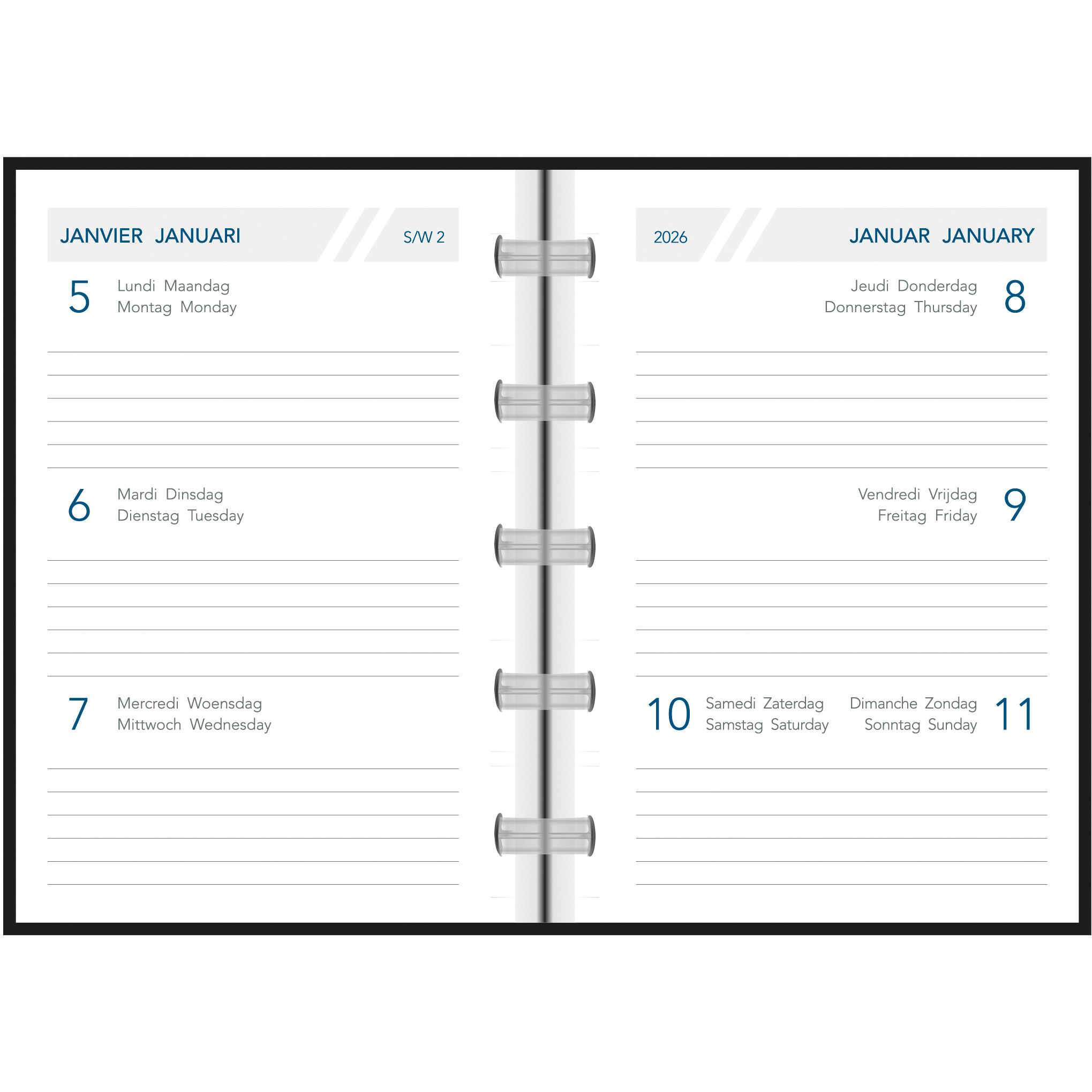 Cet agenda de poche ADOC n'est pas seulement un planificateur idéal mais toutes les pages sont interchangeables et amovibles grâce au système de reliure à anneaux ADOC, avec une couverture en polypropylène transparent aux couleurs vives.