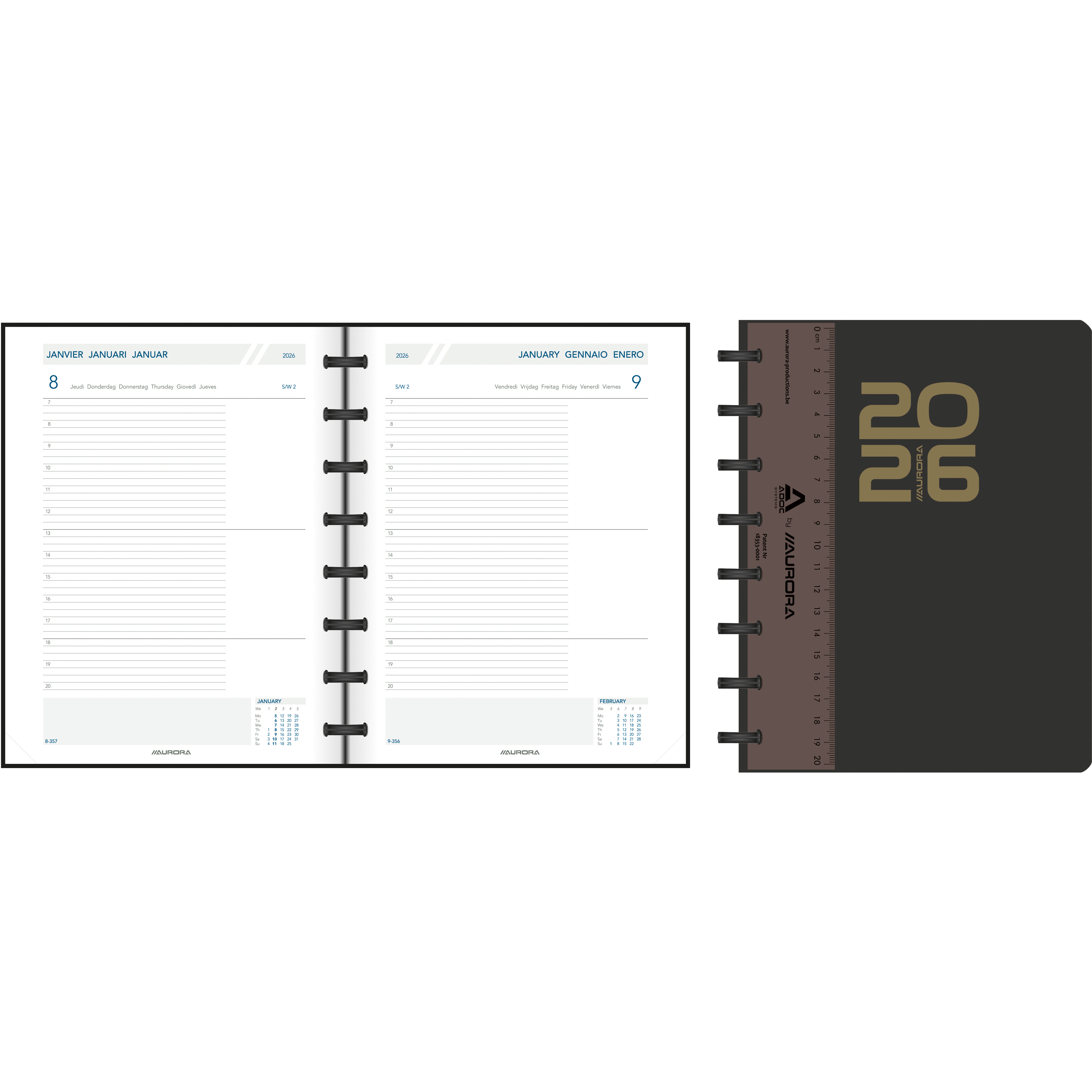 Cet agenda journalier ADOC n'est pas seulement un planificateur idéal avec son format demi-heure de 7 à 20 heures, toutes les pages sont interchangeables et amovibles grâce au système de reliure à anneaux ADOC, avec une couverture en polypropylène noir.