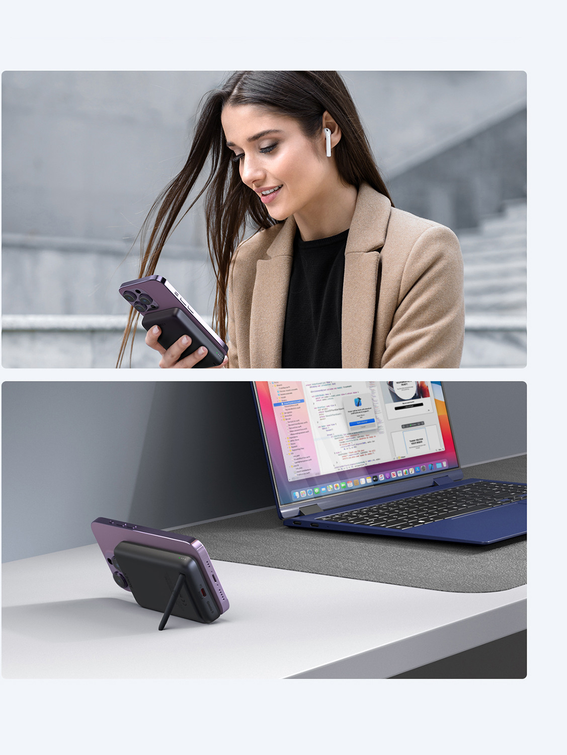 Chargement sans fil de 15 W maximum selon Qi2 : s'aligne sur le chargement magnétique puissant et offre jusqu'à 15 W de vitesse de chargement sans fil rapide pour l'iPhone 12 et les modèles plus récents. Profitez d'une expérience de chargement sans enchevêtrement et sans effort, sans avoir besoin de câbles. Charge rapide filaire de 20W : La puissante fonction de charge rapide PD 20W assure une charge rapide et efficace via le port USB-C, minimise les temps d'arrêt et vous permet de rester connecté. Support pliable : le support pliable intégré, très pratique, vous permet de placer votre appareil sous un angle confortable pendant la charge - parfait pour regarder un film ou passer un appel vidéo.