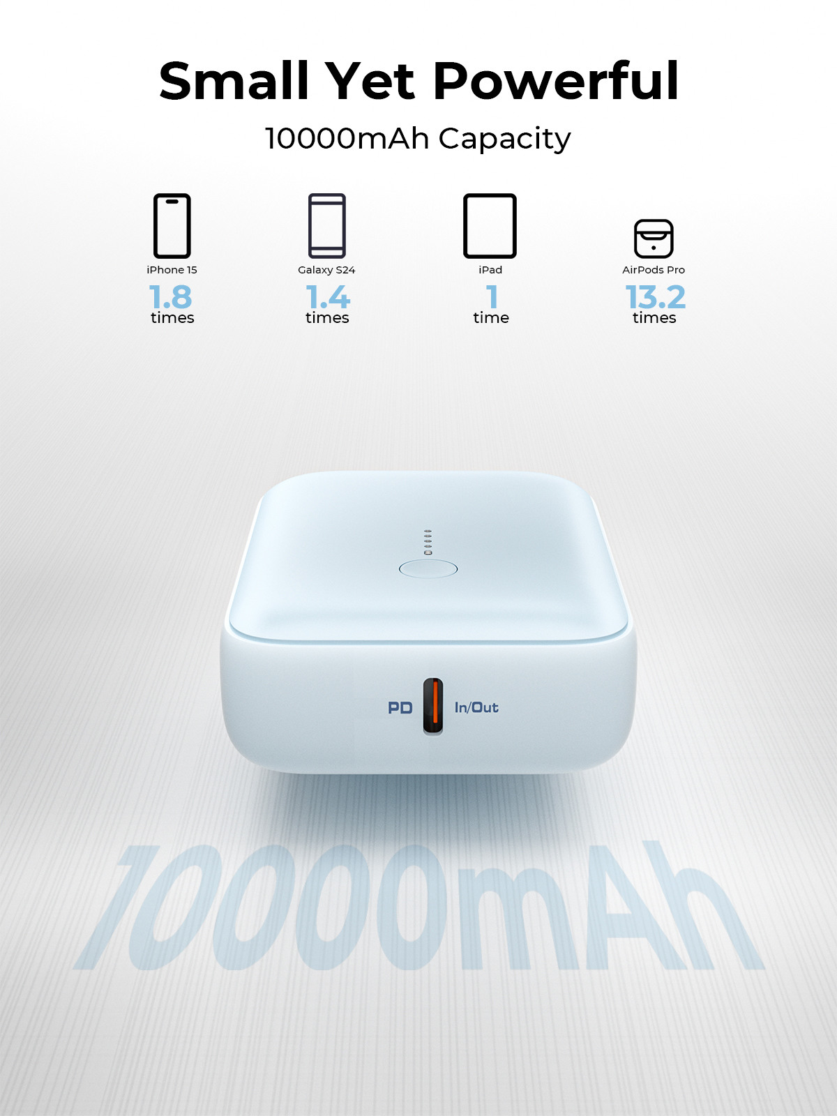 Design ultra-compact : ce powerbank est incroyablement petit et tient facilement dans la paume de votre main, il est plus petit qu'une carte de crédit. Il s'agit donc de la solution de recharge portable parfaite pour les personnes en déplacement.