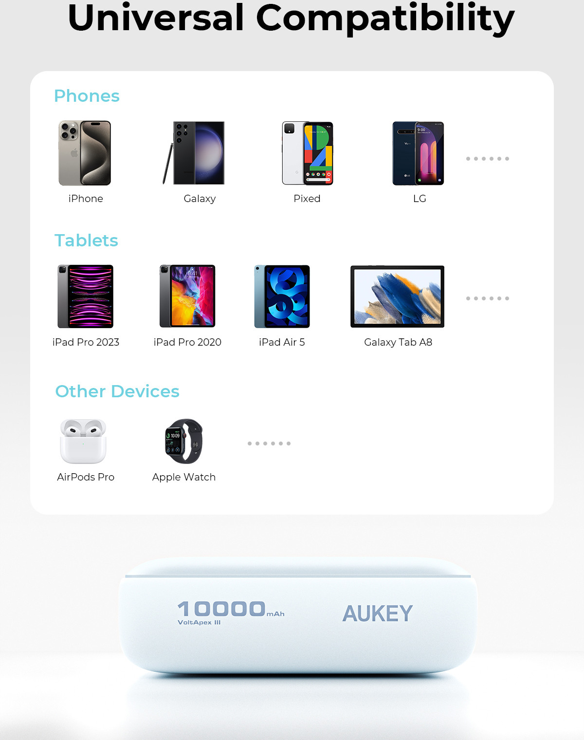 AUKEY Spark Mini 10000, 20W, PD,QC PB-Y55 WH Powerbank,White,USB-C,USB-A