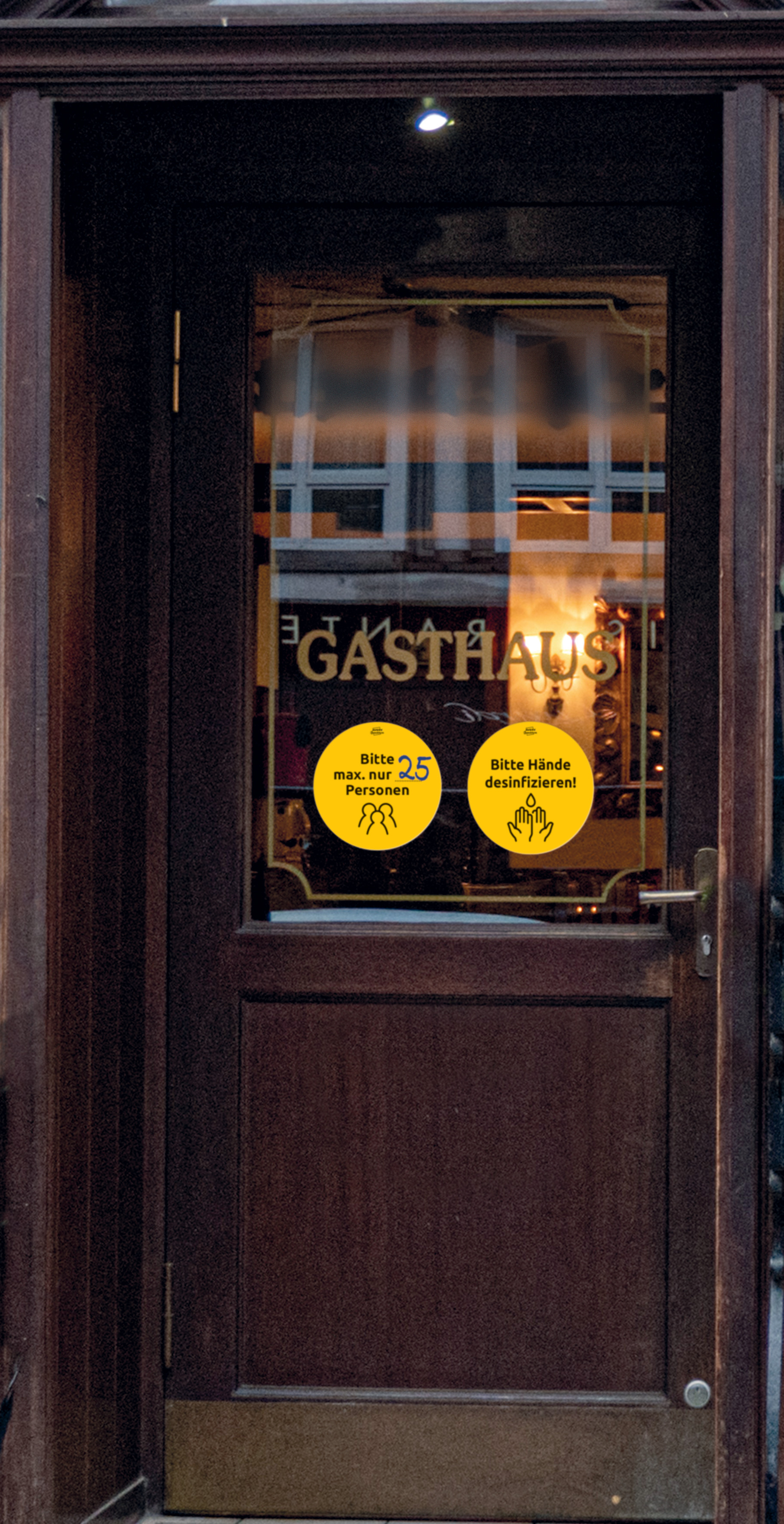 Autocollants de signalisation pour les règles de distance et d'hygiène. Les autocollants préimprimés permettent d'afficher rapidement des règles d'hygiène et des avertissements dans les lieux publics. Diamètre : 20 cm.