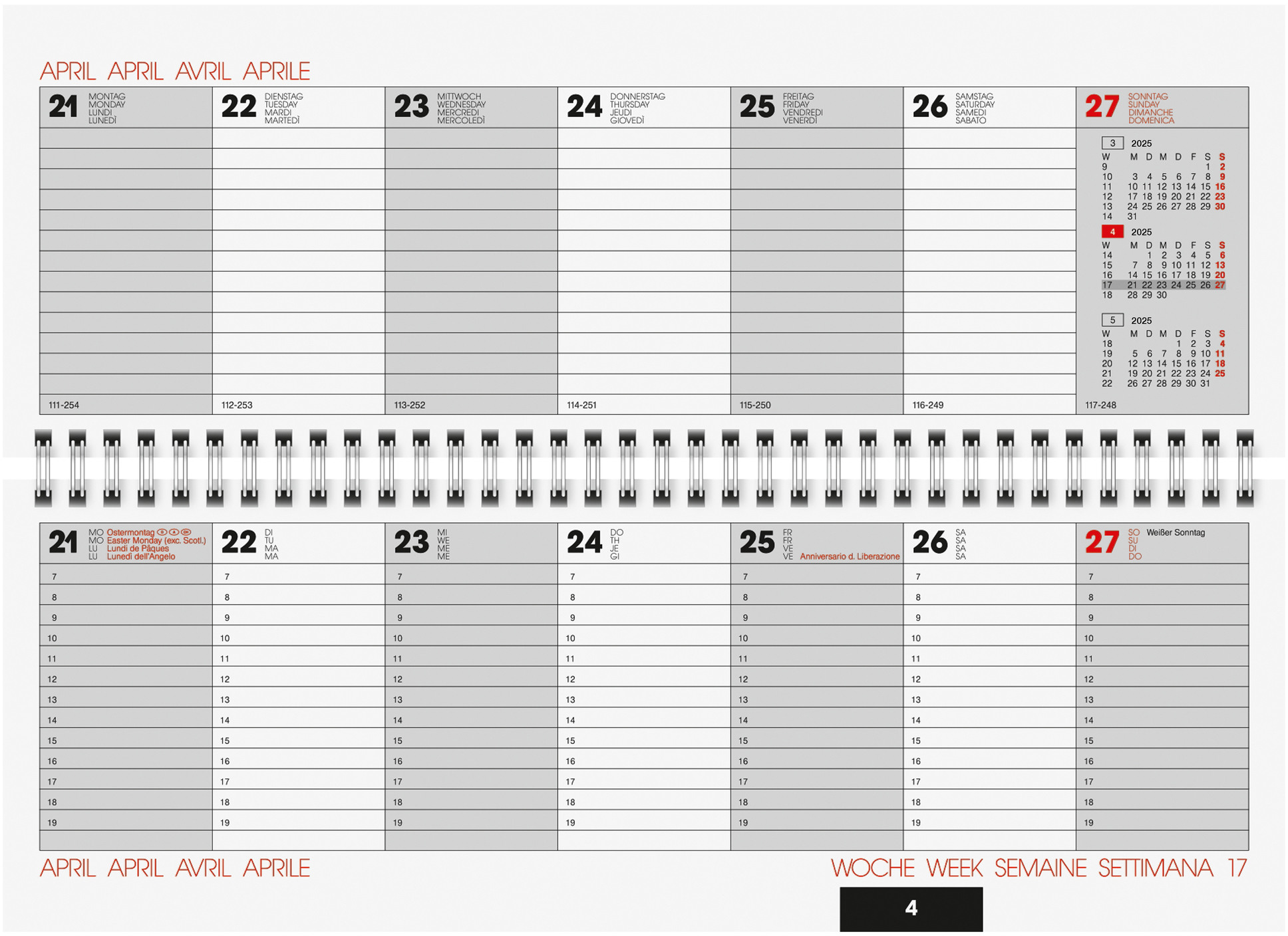 Le Pultagenda Biella s'ouvre facilement grâce à sa reliure à spirale et contient le calendrier 1 semaine sur deux pages. Avec un aperçu du mois, une répartition des heures et des champs de notes, le Pultagenda offre beaucoup de place pour écrire tout en étant compact et p