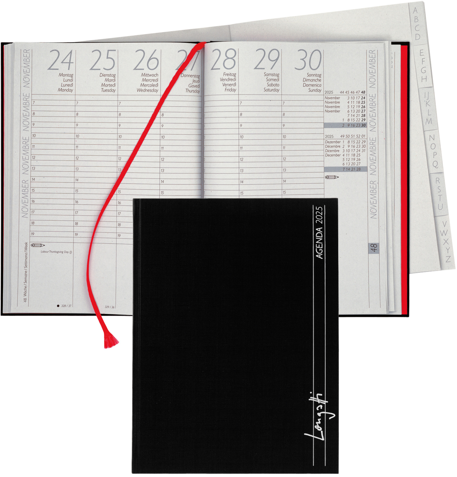 L'agenda professionnel Biella est idéal pour une utilisation quotidienne. Notre agenda professionnel d'une semaine sur deux pages vous garantit beaucoup de place pour planifier, la possibilité de prendre des notes et des rappels, ainsi qu'une excellente organisation grâce à la division des heures. 144 pages, 1 semaine sur 2 pages. Couverture en similicuir, bande à dessin. Calendrier d-f-i-gb. Papier gris, impression noire, division des heures 07.00-19.00, 1 heure. Pages annuelles, mensuelles et pages de notes. Chaque page avec aperçu mensuel. 16 pages d'index d'adresses interchangeables.