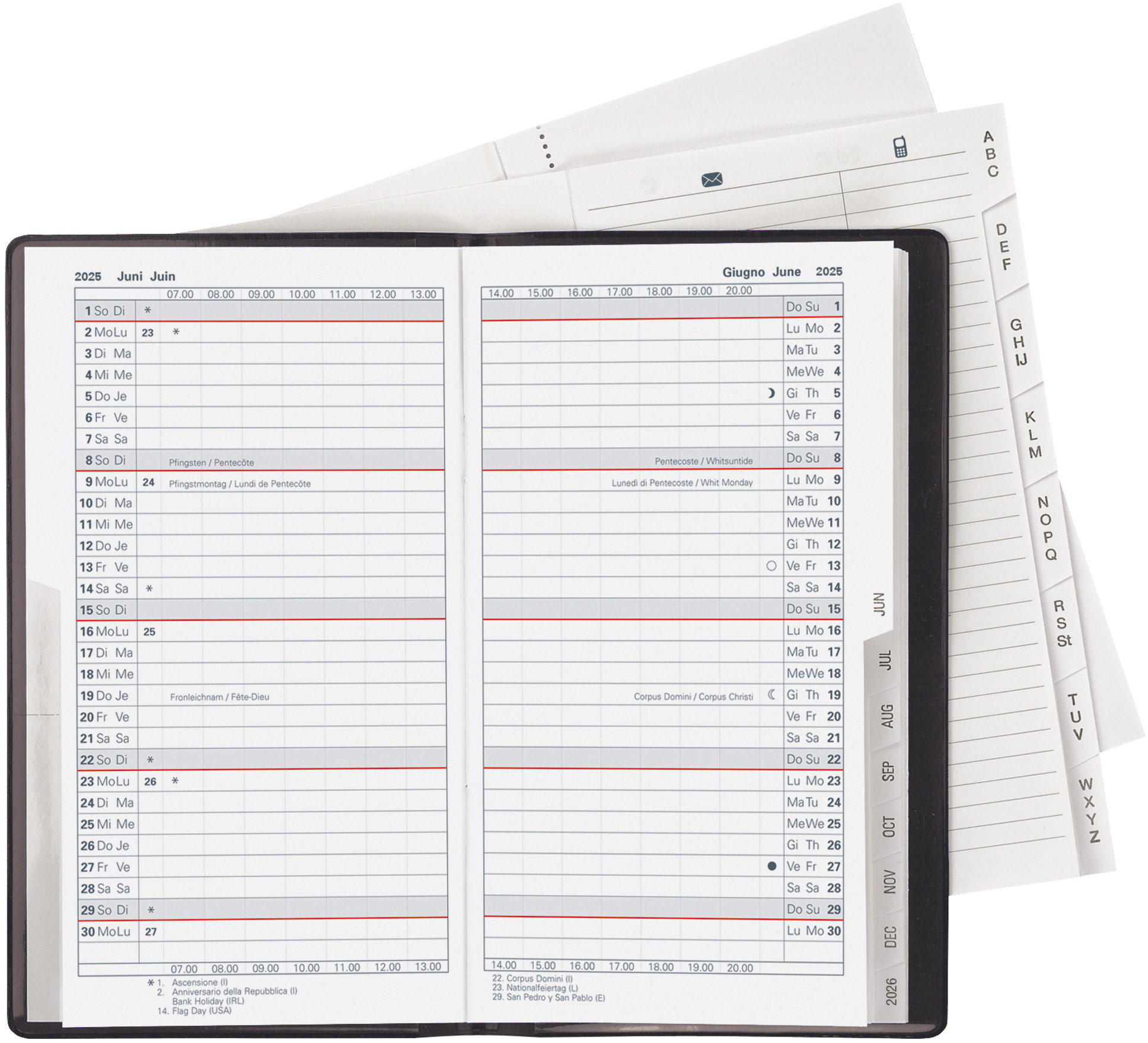 Avec son format 8,7x15,3, l'agenda Biella Lucerne se glisse idéalement dans chaque poche de chemise ou sac à main. Ce classique très apprécié, avec son calendrier d'un mois sur deux pages, existe désormais aussi en couleurs tendance. Comme d'habitude, l'agenda contient en outre un répertoire d'adresses et du papier pour prendre des notes.