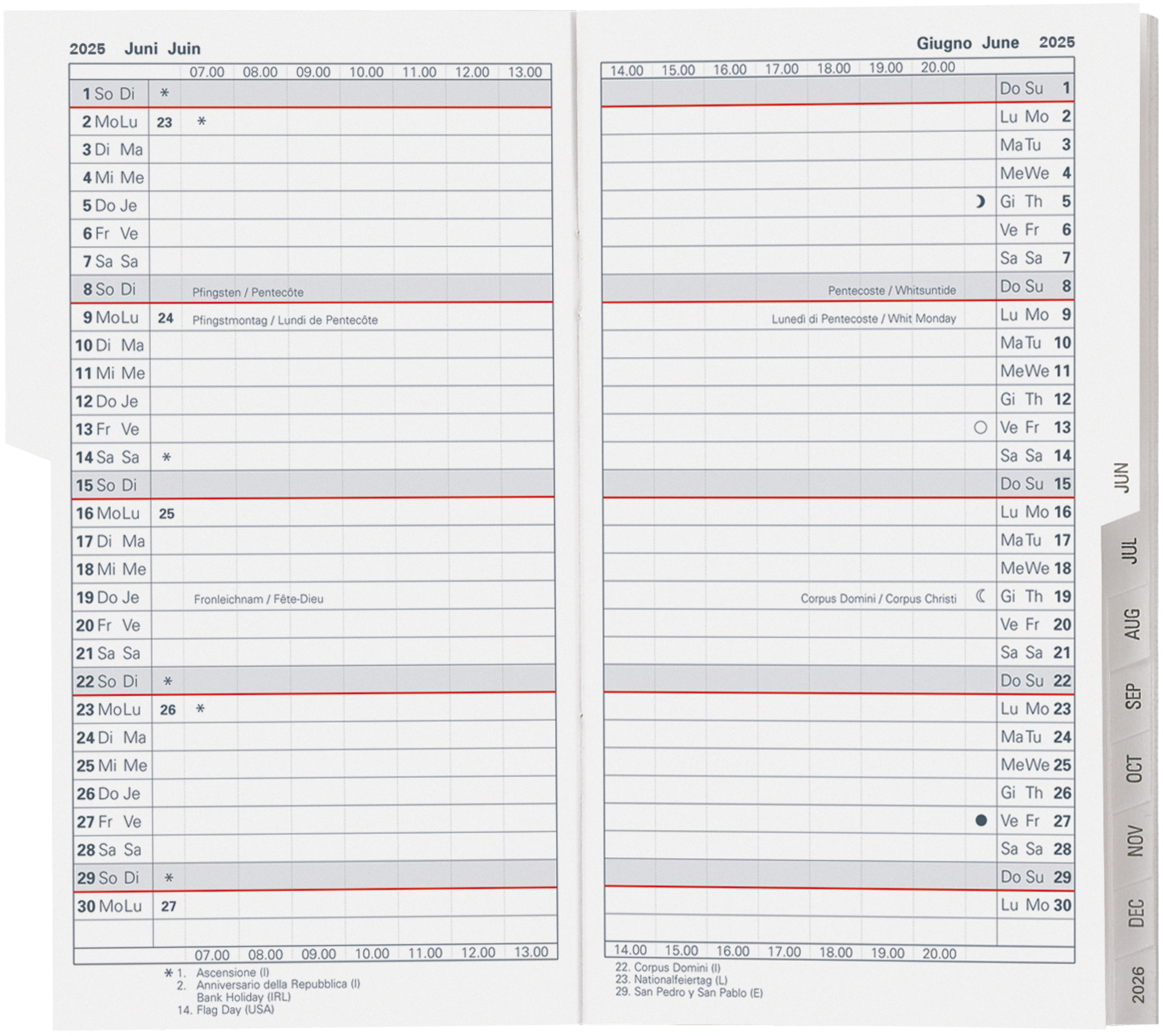 L'agenda Biella Lucerne se glisse idéalement dans une poche de chemise ou un sac à main. Ce classique très apprécié possède un calendrier d'un mois sur deux pages. Dans la version all in one, le registre d'adresses et le papier de notes sont directement intégrés.