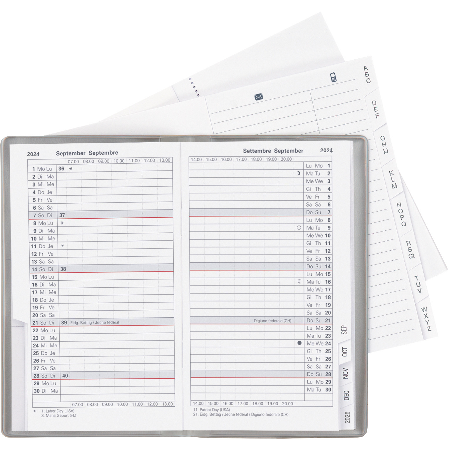 L'agenda Paris de Biella est idéal pour les planificateurs économes qui souhaitent n'avoir que les entrées les plus importantes dans l'aperçu mensuel. L'agenda Paris est le plus petit format d'agenda et contient, en plus du calendrier 1 mois par page, un répertoire d'adresses et du papier pour prendre des notes.