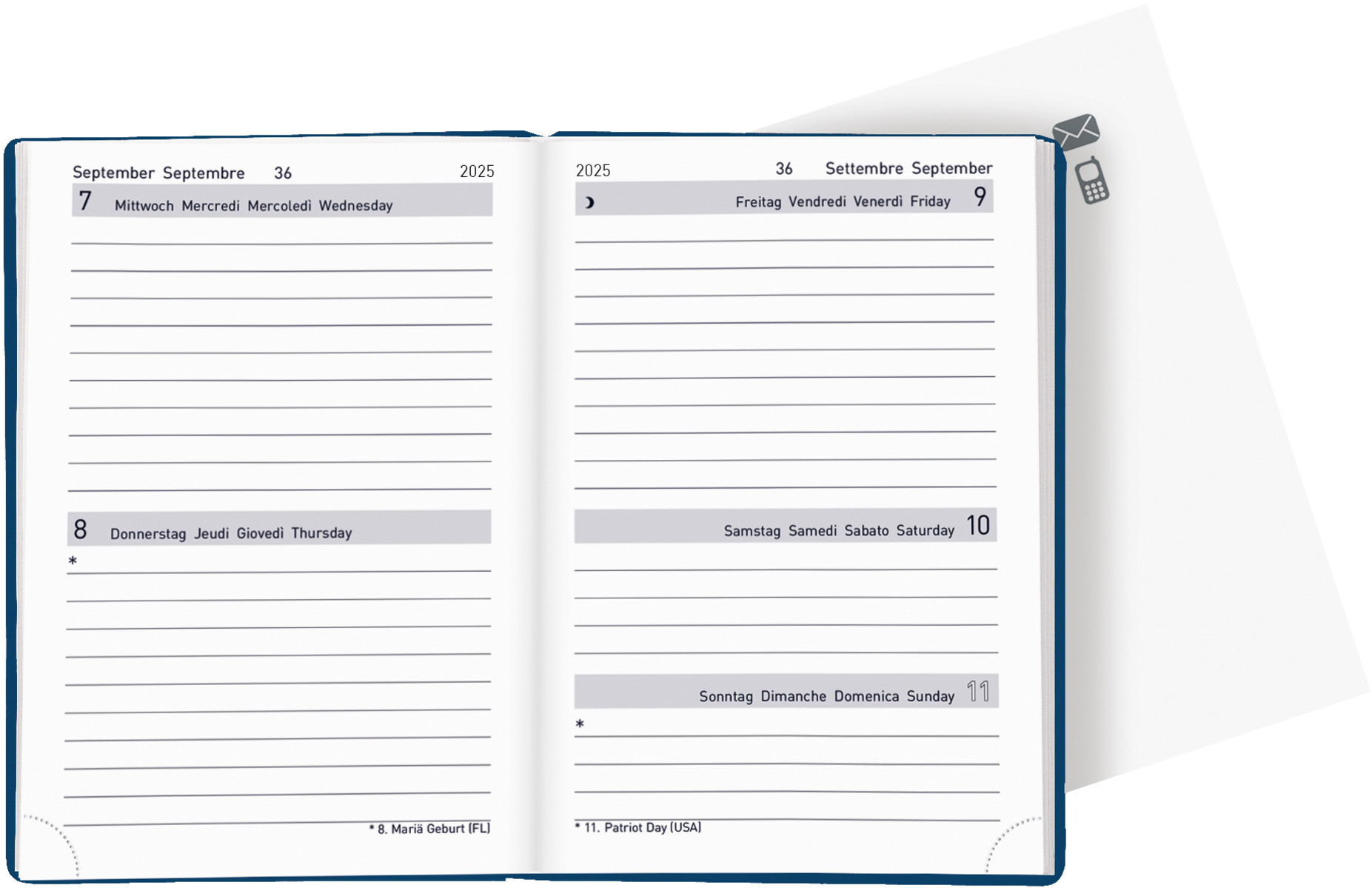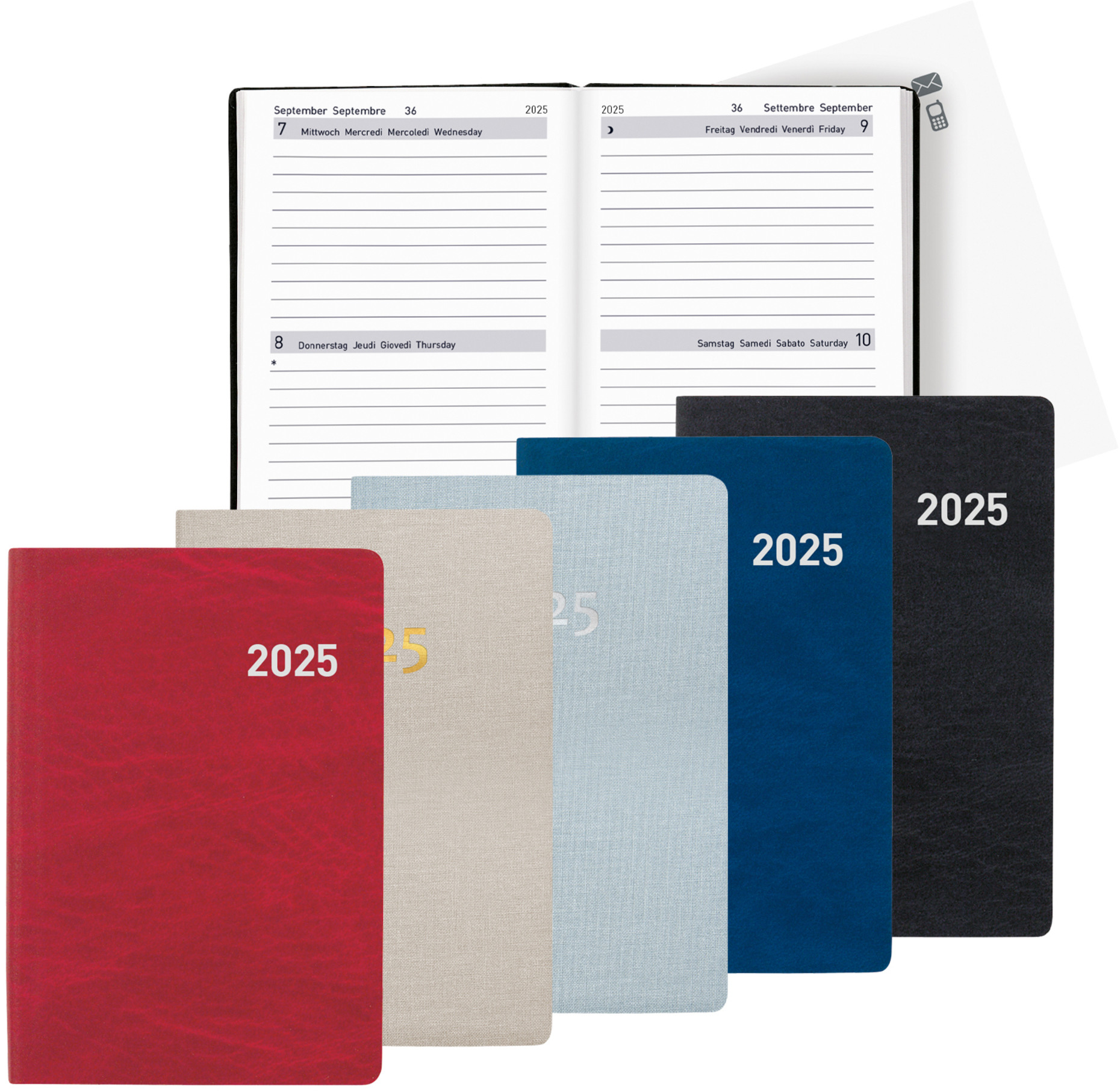 L'agenda de poche Biella est parfaitement adapté à un usage privé. Notre agenda de poche, avec 2 jours par page, est pratique, se glisse dans toutes les poches et vous donne un aperçu bref et précis de vos rendez-vous.