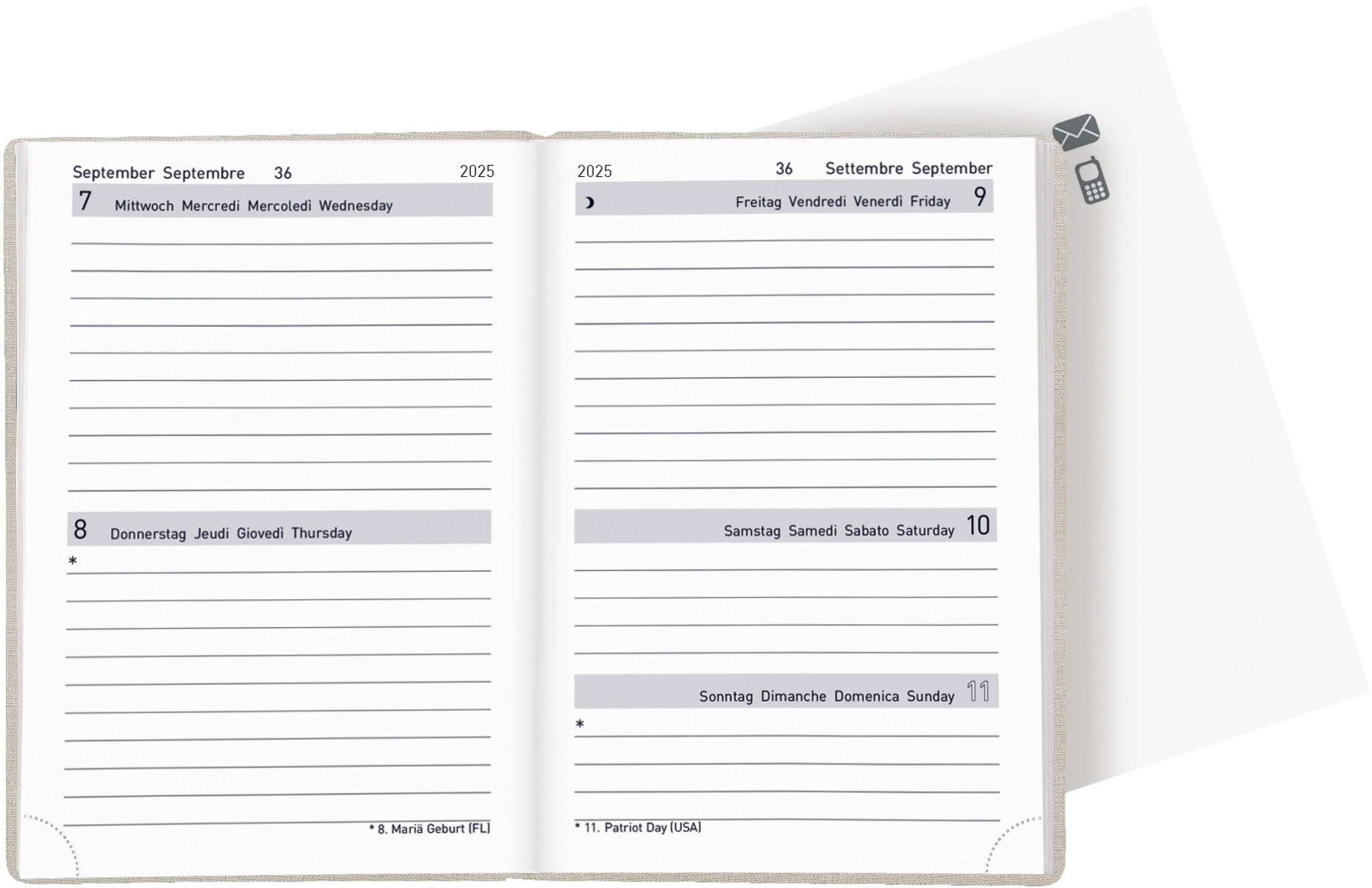L'agenda de poche Biella est parfaitement adapté à un usage privé. Notre agenda de poche avec 2 jours par page est pratique, se glisse dans une poche et vous donne un aperçu pratique de tous vos rendez-vous.
