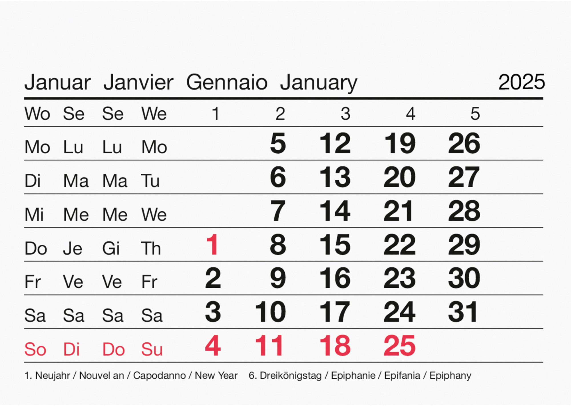 BIELLA Calend.mural Jumbo 2 Stk. 2026 876418000026 1A/1P blanc 64.5x29.7cm