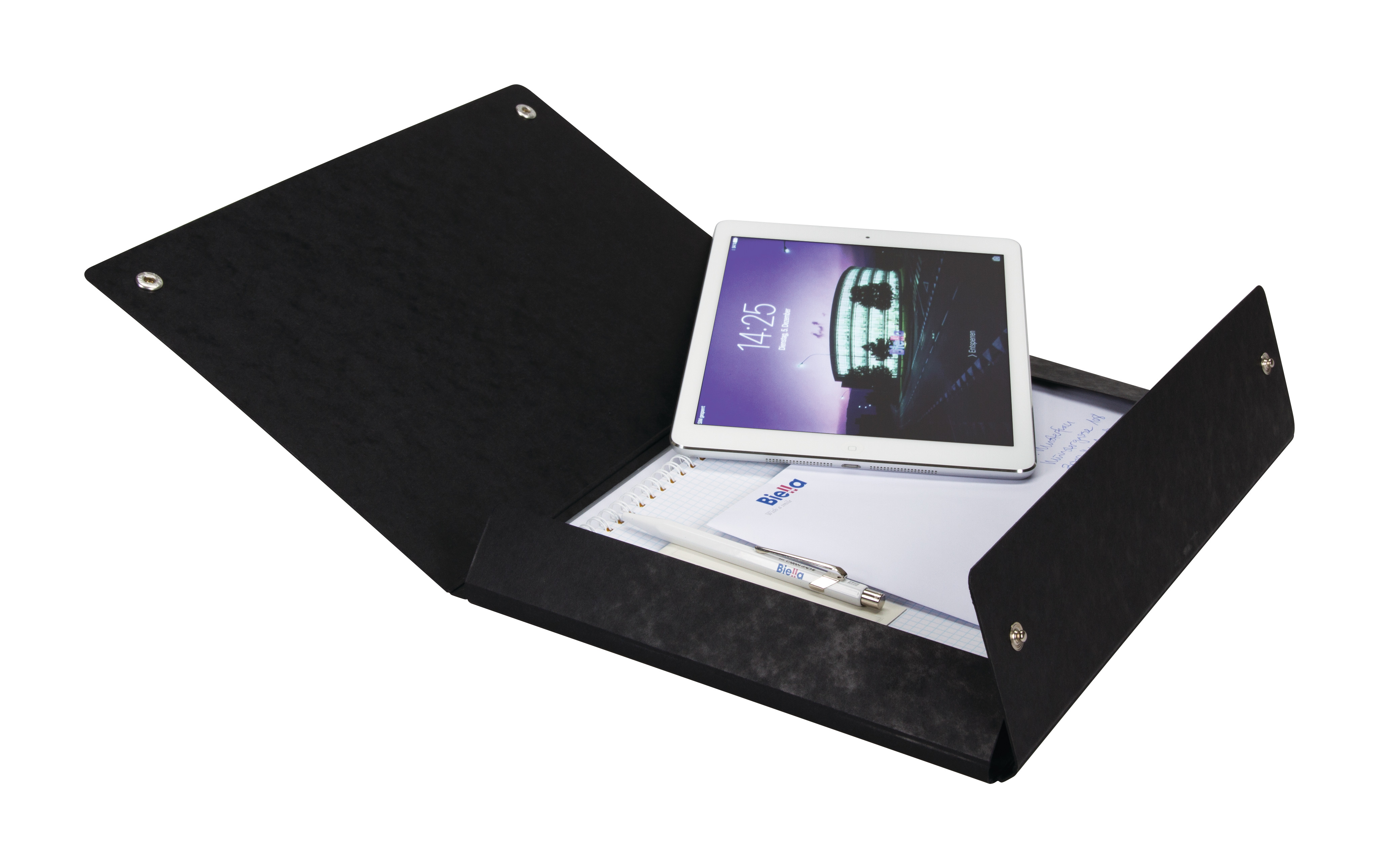 La chemise TopColor ultrafine de Biella est pourvue d’une élégante fermeture à bouton pression et offre un rangement spacieux pour vos documents. Vous pouvez non seulement y glisser vos documents, mais aussi vos divers supports d’écriture, blocs-notes, dossiers de projet, votre tablette et plus encore.
