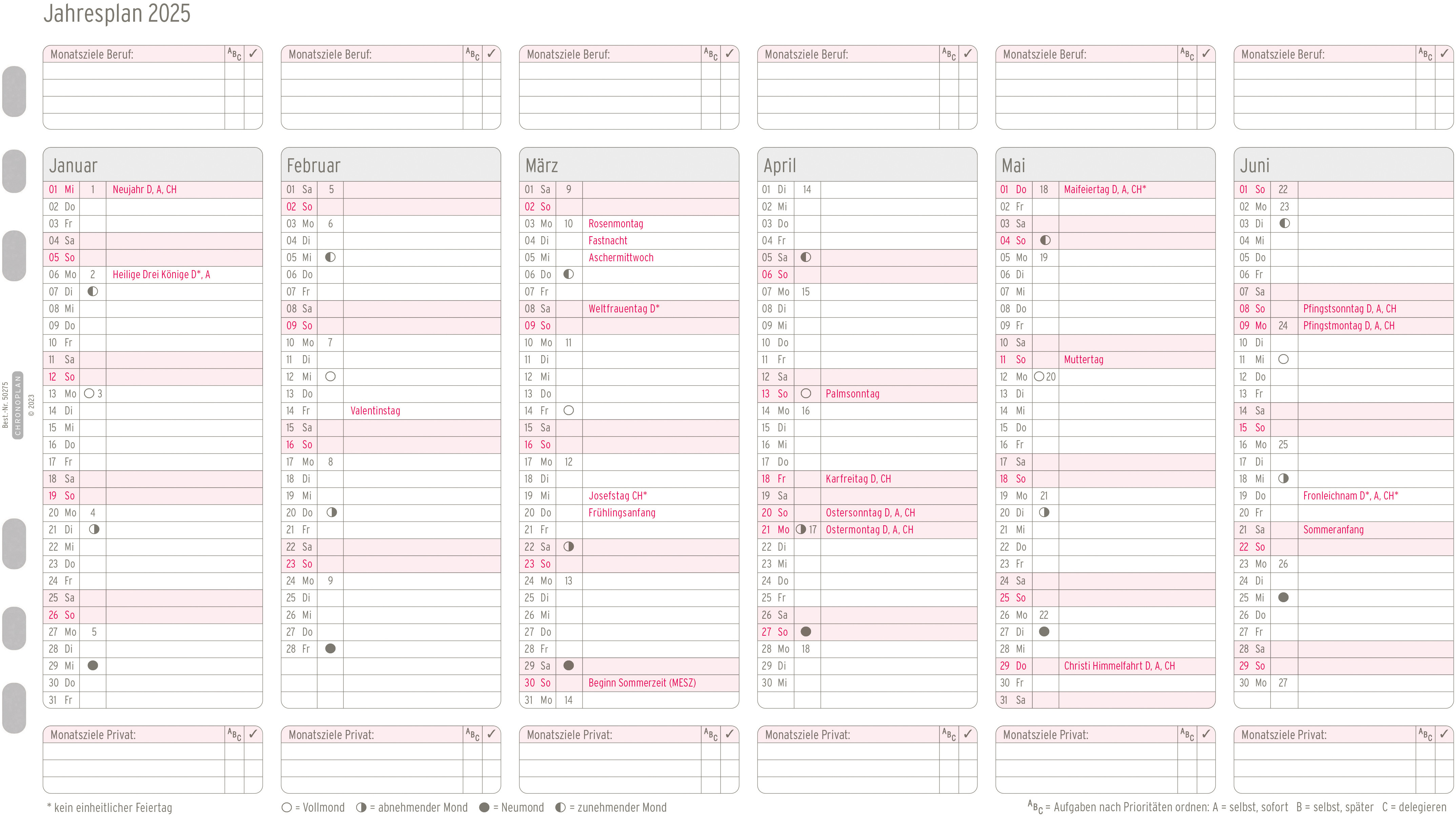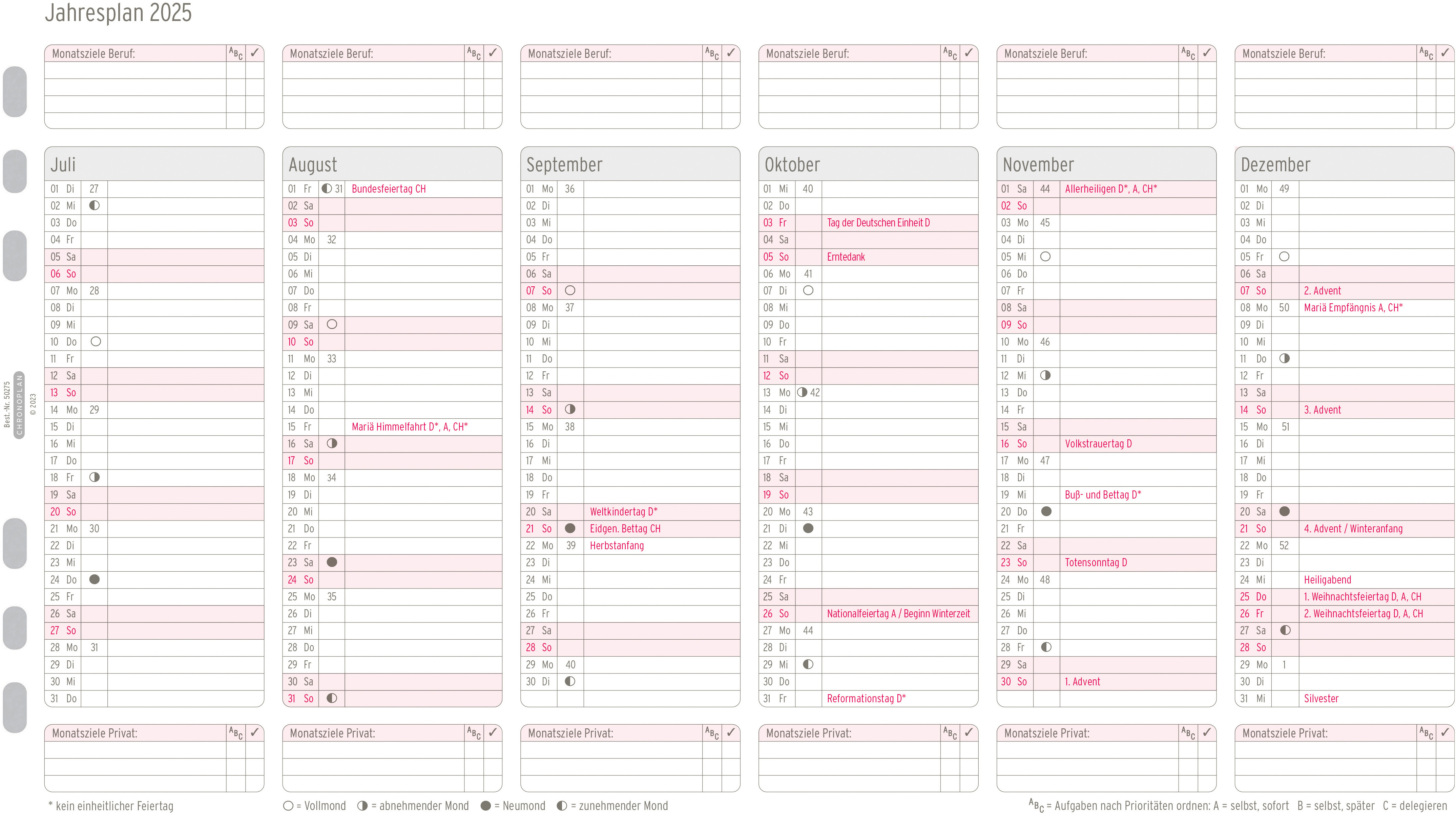 Pochette de calendrier de Chronoplan. S'adapte à tous les agendas courants grâce à la perforation universelle.