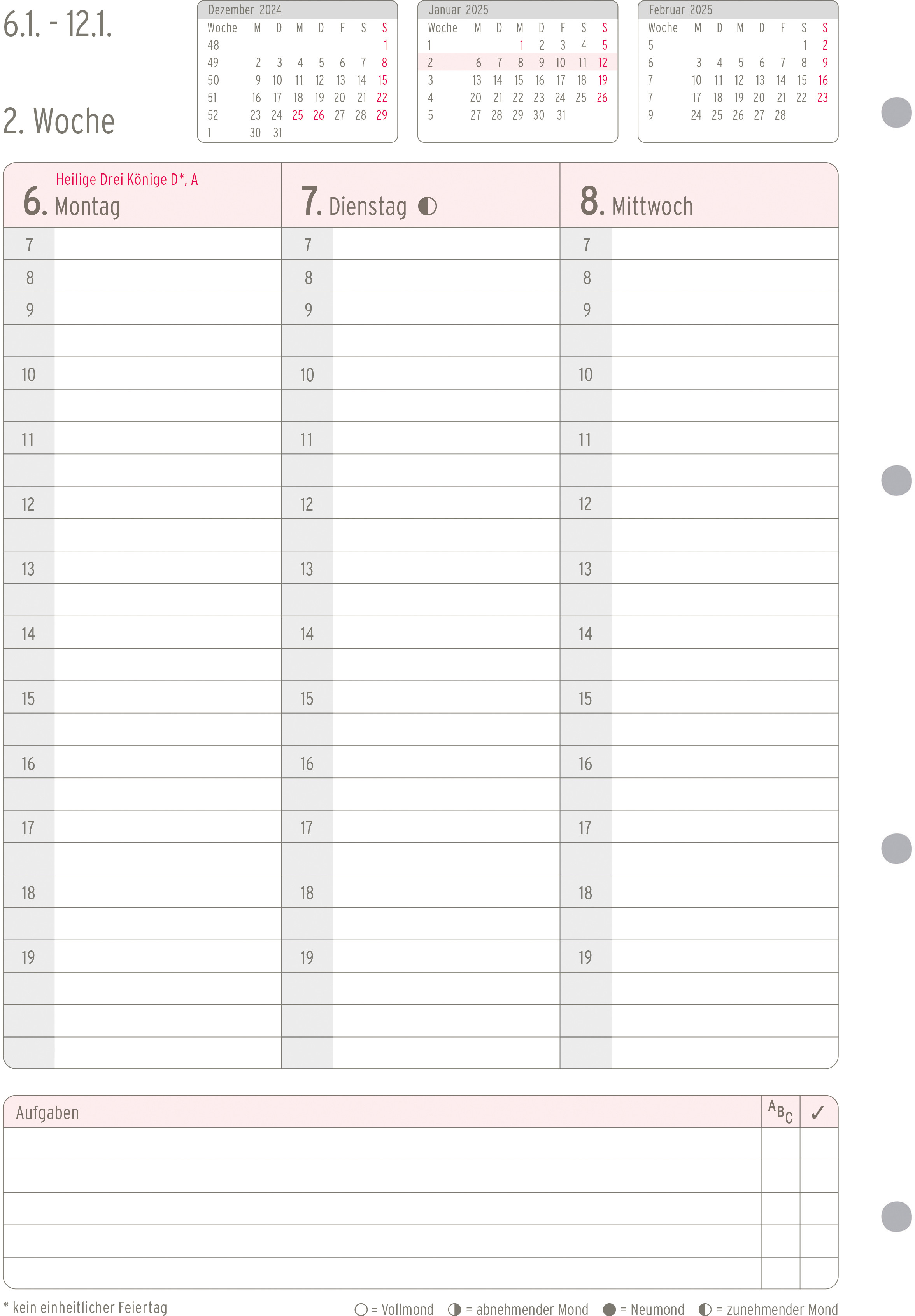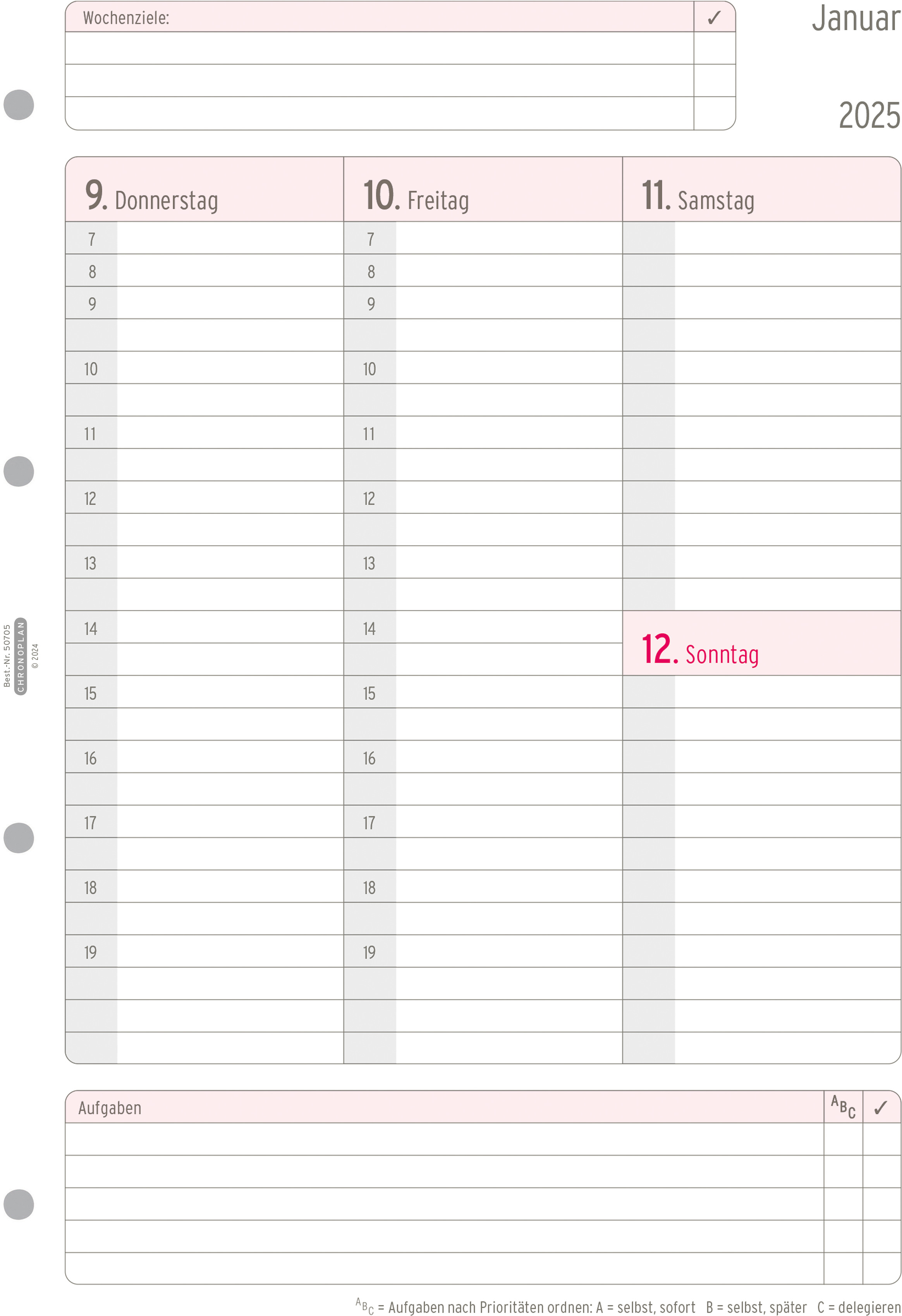 Pochette de calendrier de Chronoplan. S'adapte à tous les agendas courants grâce à la perforation universelle.