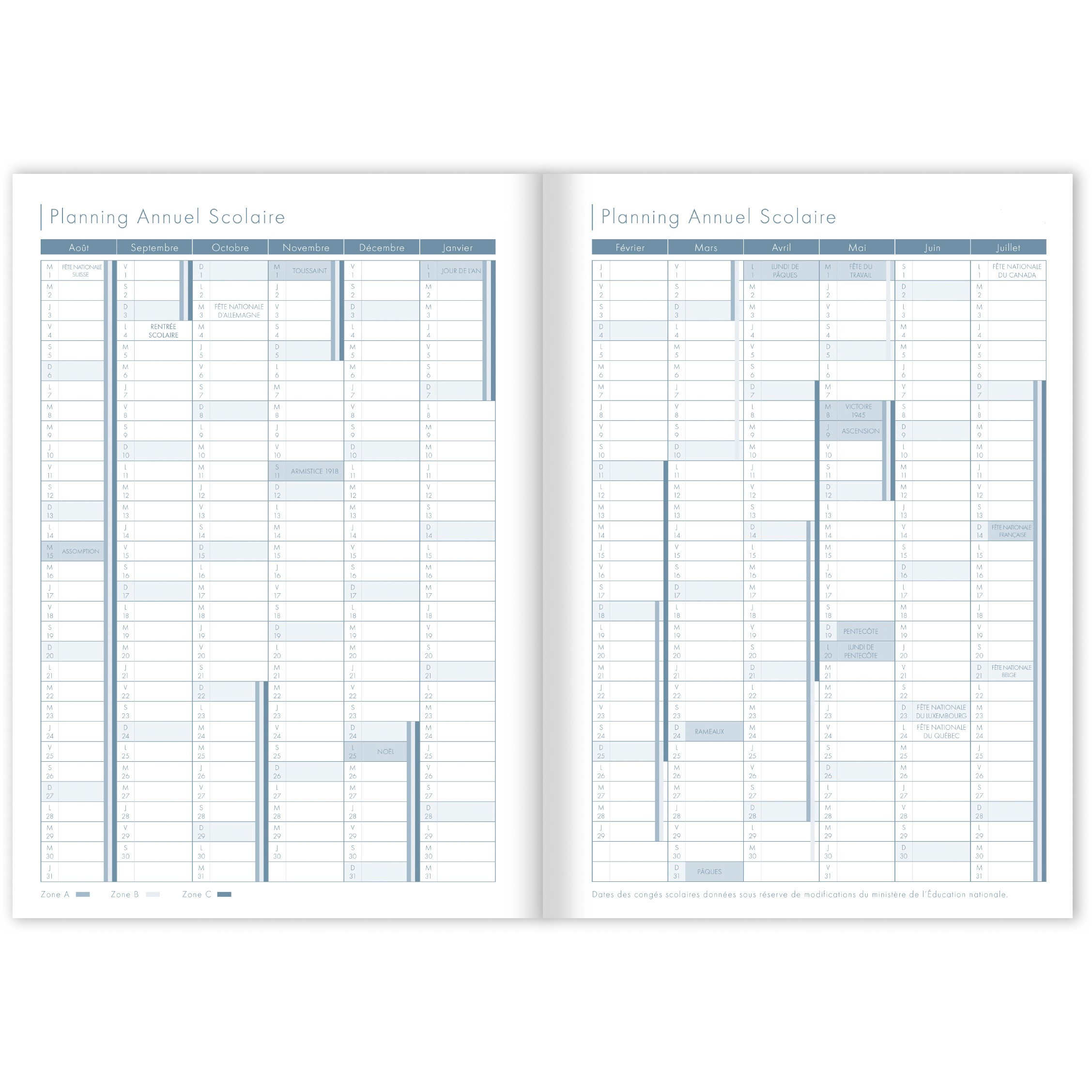 Agenda pratique de Clairefontaine. Offre suffisamment de place pour planifier toutes les heures d'école et les activités de loisirs.