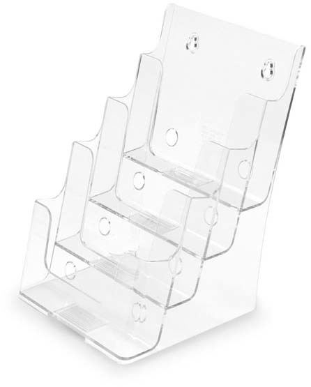 Pour une multitude de prospectus, économise une surface de présentation précieuse. A poser ou à fixer au mur. Biseautée pour une présentation stable des produits. Matériau : polystyrène. Avec 4 compartiments. Taille : A5, 175 x 255 x 165 mm (l x h x p).