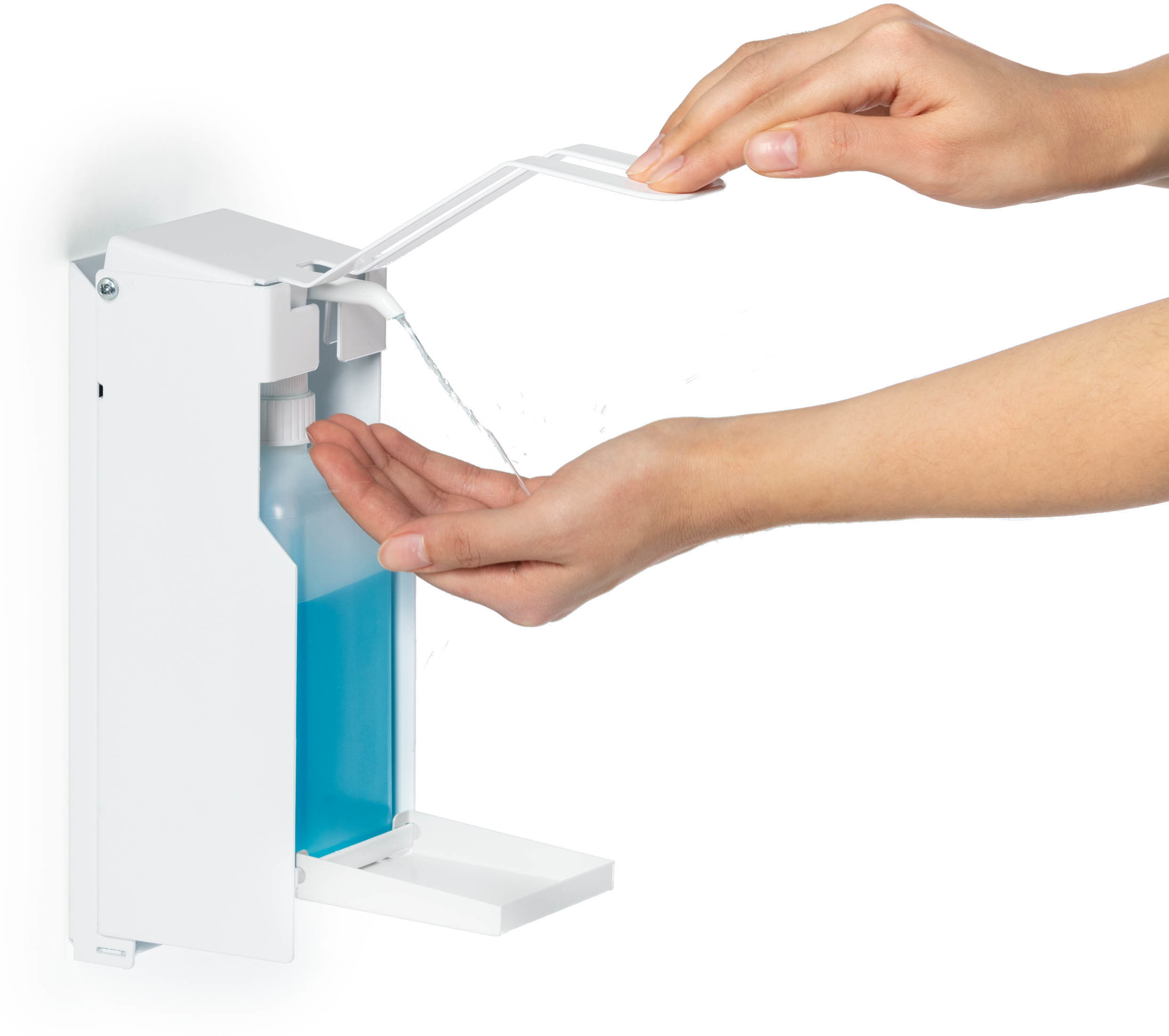 Les distributeurs de désinfectants font partie intégrante des concepts de protection et d'hygiène dans le cadre de la lutte contre les infections. Que ce soit au travail, en faisant les courses, en faisant du sport ou chez le médecin : le support mural pour produits désinfectants est rapidement installé et facile à utiliser grâce au levier du bras.