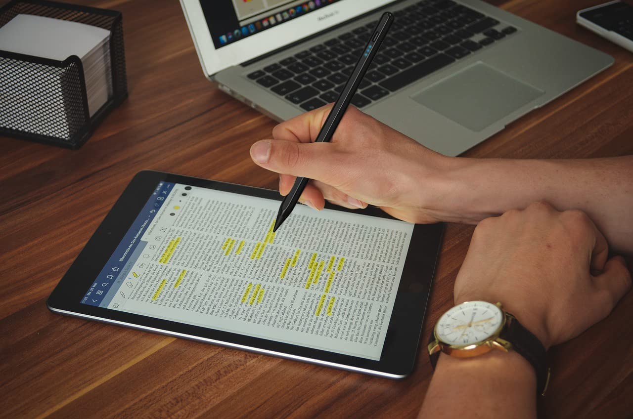 Exactement comme un crayon sur papier : le stylet ultrasensible offre une sensation d'écriture lisse et authentique, comme l'original. La technologie Palm Rejection vous permet de poser confortablement votre main sur votre écran.