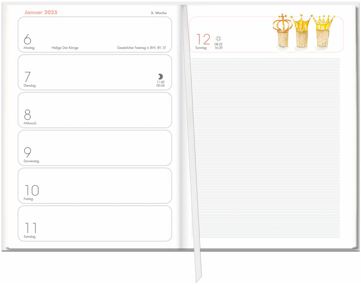Populaire depuis plus de 40 ans : L'agenda Lady pratique au format A6 avec des illustrations délicates et de belles citations.
