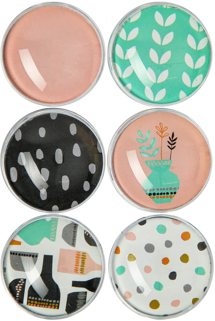 Les aimants décoratifs en paquet de 6 sont parfaits pour accrocher des notes dans la cuisine, la chambre, la salle de bains, le garage ou sur le réfrigérateur. Les aimants circulaires sont imprimés en couleur, ont une enveloppe en verre transparente et permettent de mettre en œuvre de nombreuses idées créatives.