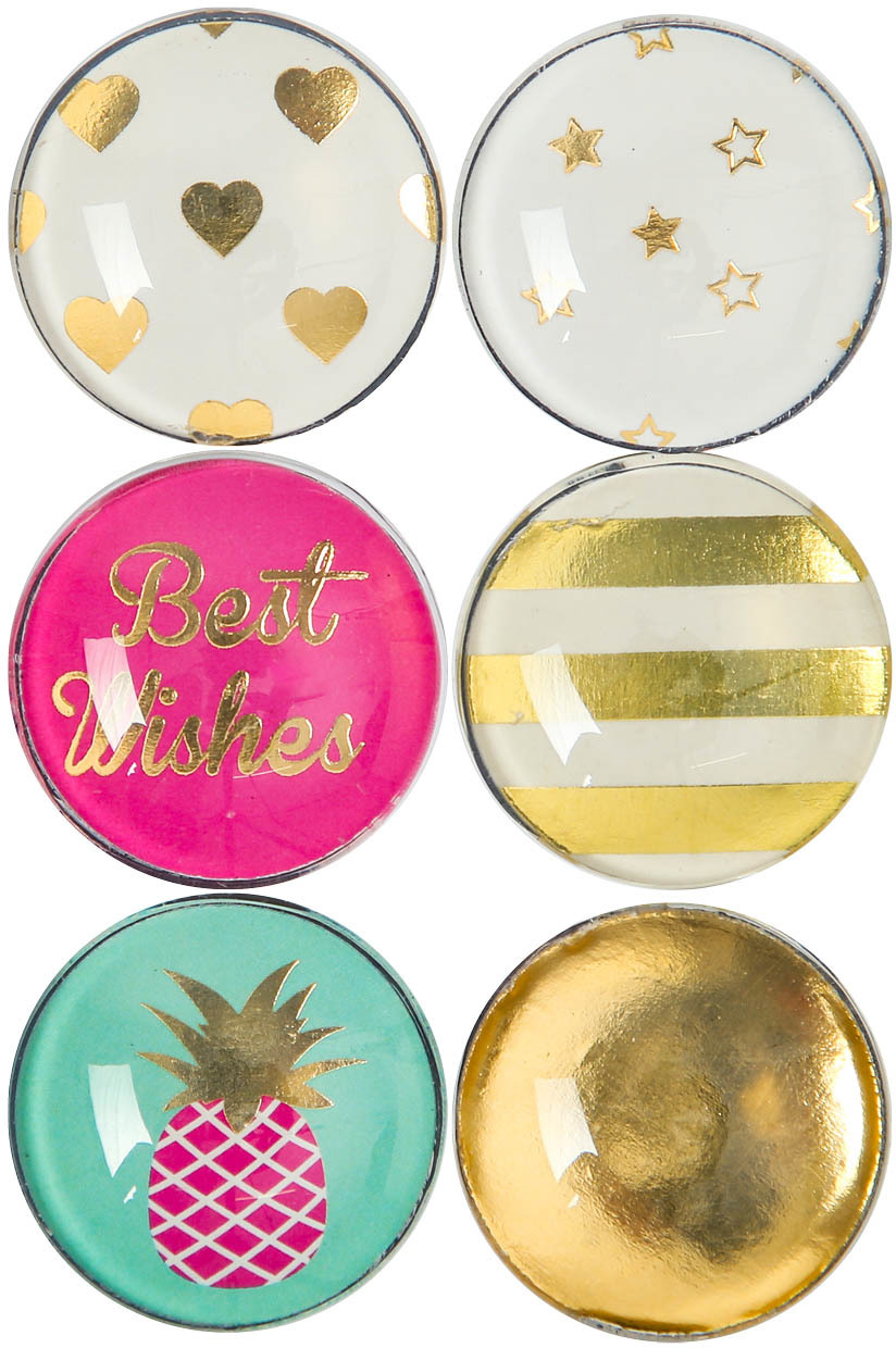 Les aimants décoratifs en paquet de 6 sont parfaits pour accrocher des notes dans la cuisine, la chambre, la salle de bains, le garage ou sur le réfrigérateur. Les aimants circulaires sont imprimés en couleur, ont une enveloppe en verre transparente et permettent de mettre en œuvre de nombreuses idées créatives.