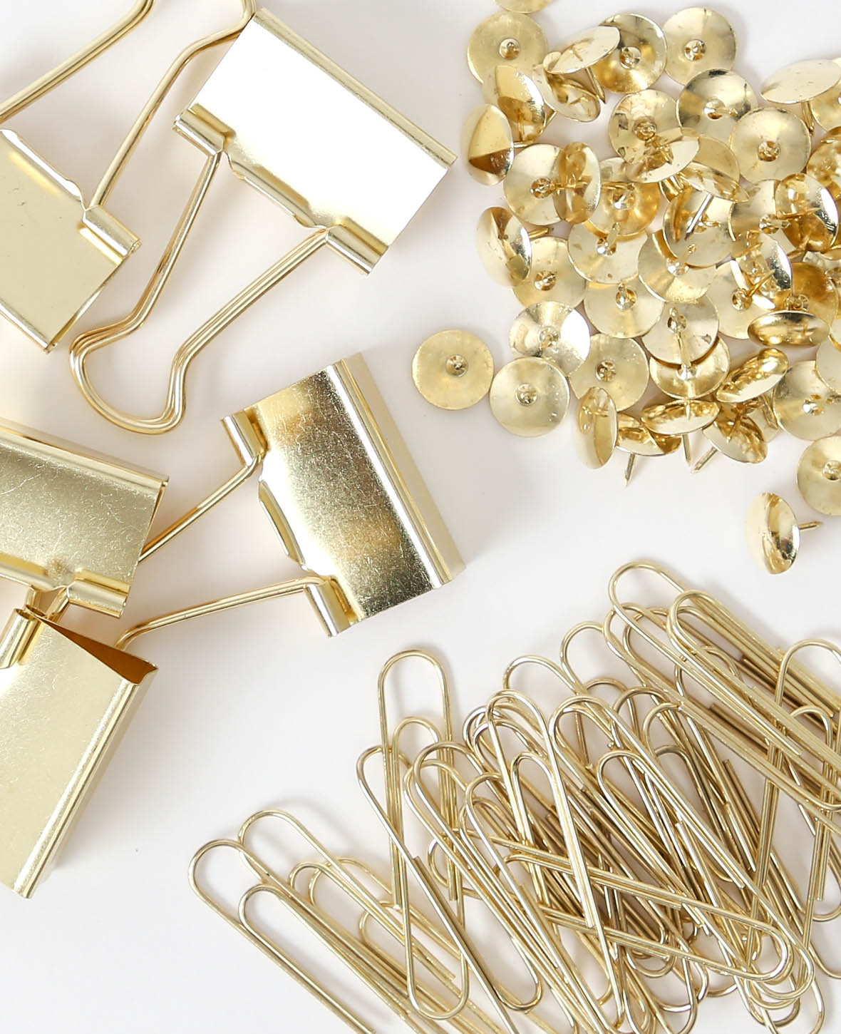 Ce set pratique pour le bureau comprend des trombones, des punaises et des trombones à papier. Les petites épingles permettent non seulement de fixer des photos et des notes sur le tableau d'épingles ou de feutre, mais aussi d'accrocher d'autres beaux souvenirs et dessins. Pour les liasses de papier épaisses, les clips de reliure ou les trombones sont parfaits. Les trombones permettent d'assembler des feuilles et de marquer des pages de livres. Contenu : - clips de reliure largeur : 32 mm - trombones taille : 49 x 10 mm - punaises taille : ø 10 x 10 mm