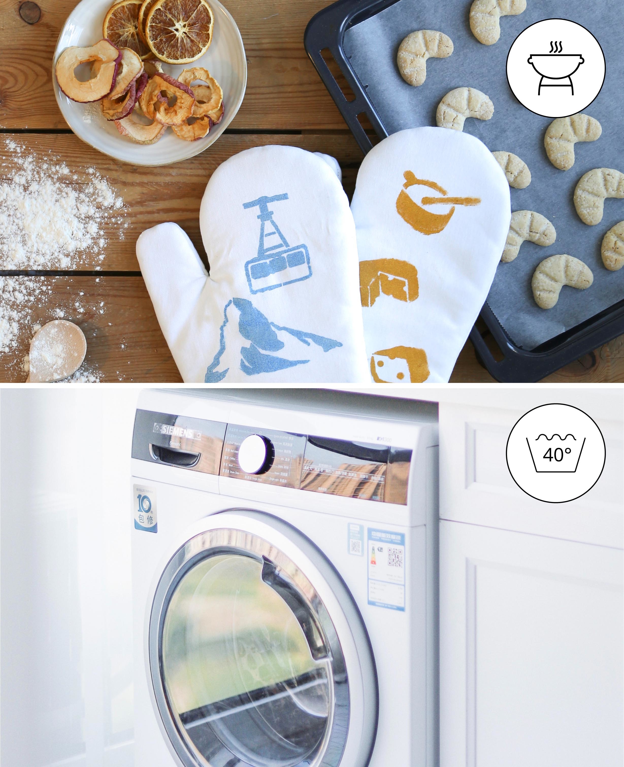 Des gants de cuisine à imprimer et à personnaliser soi-même. Que l'on imprime le tissu avec un tampon fait maison ou que l'on laisse les petits enfants peindre avec de la peinture textile, les résultats sont toujours convaincants. Découvre les possibilités illimitées qu'offrent les textiles ! Remarque : prélaver les textiles sans adoucissant avant d'appliquer la première couche de peinture. Repasser la couleur conformément à la notice d'emballage.