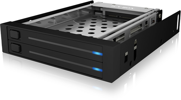 Ils doivent tous deux avoir un facteur de forme de 2,5", une connexion SATA et une hauteur maximale de 9,5 mm, afin que nous nous sentions encore à l'aise ensemble. Si nous nous entendons bien, je transfère les données à une vitesse allant jusqu'à 3 Gbit/s (SATA I, II). Ainsi, deux disques durs SATA 2,5" ou SSD tiennent dans une baie 3,5". Chacun a son propre volet frontal et une LED pour l'alimentation et l'accès. Easy Swap permet un montage et un démontage rapides sans outils. Pas de problème - comme si on arrachait un pansement. Avec Hot Swap et Plug and Play, je trouve rapidement une nouvelle connexion. Sans outils, cela se fait aussi très agréablement.