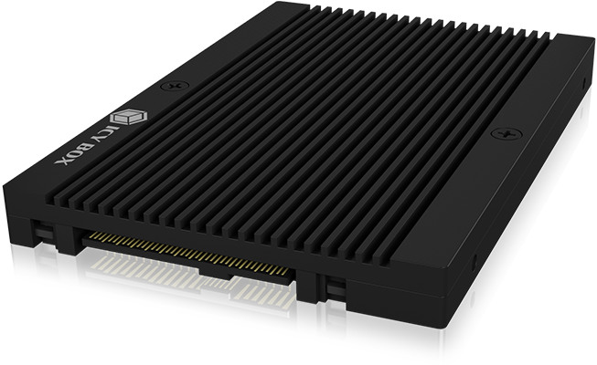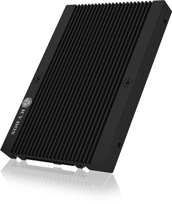 U.2 s'impose de plus en plus dans les solutions de stockage professionnelles. Ce n'est pas étonnant, U.2 apporte des taux de transfert de données PCIe (NVMe) allant jusqu'à 64 Gbit/s dans le format 2,5" et supporte le HotSwap, ce qui n'est pas le cas de son frère M.2. Les dimensions du convertisseur correspondent à un SSD 2,5" habituel avec une hauteur de 9,5 mm et peut être monté tout aussi facilement. Grâce aux ailettes de refroidissement sur la face supérieure, la surface peut être augmentée et l'évacuation de la chaleur améliorée. L'aluminium dont est fait l'ensemble du boîtier assure un refroidissement supplémentaire et rend également le convertisseur robuste.