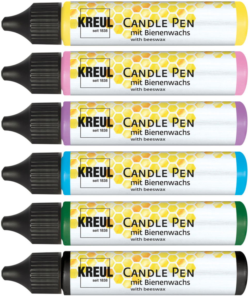 Des petits moments de bonheur au quotidien ? Ils surgissent avec le Candle Pen KREUL set de 6 bougies Bee Happy. Les six teintes gaies permettent de créer des bougies qui attirent l'attention de manière unique : Comme cadeau pour les amis, pour les occasions ou pour l'harmonie à la maison. Tout en douceur, car nous avons affiné la recette avec de la cire d'abeille naturelle. Contenu 6 stylos en jaune, rose, violet, bleu clair, vert, noir