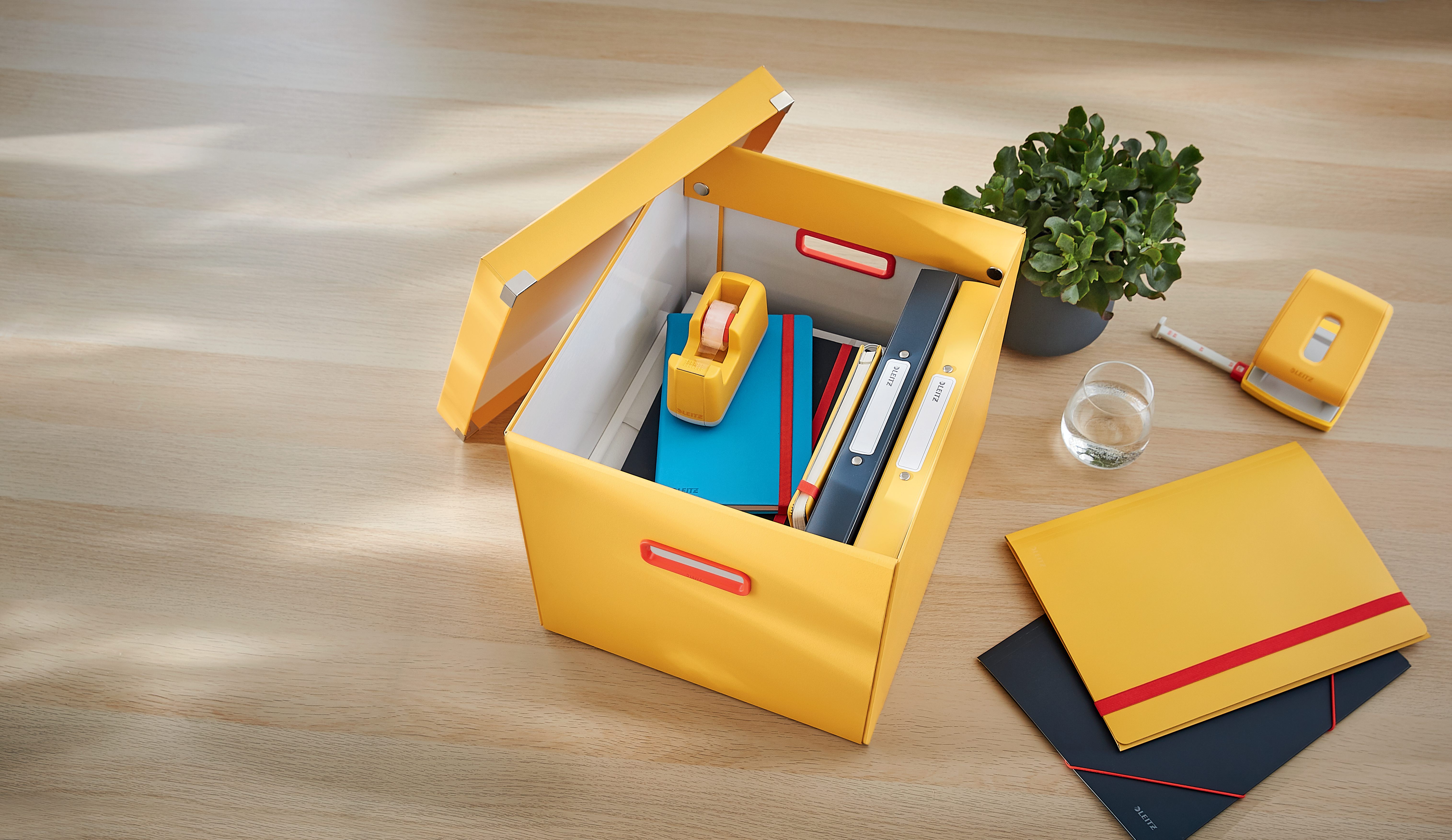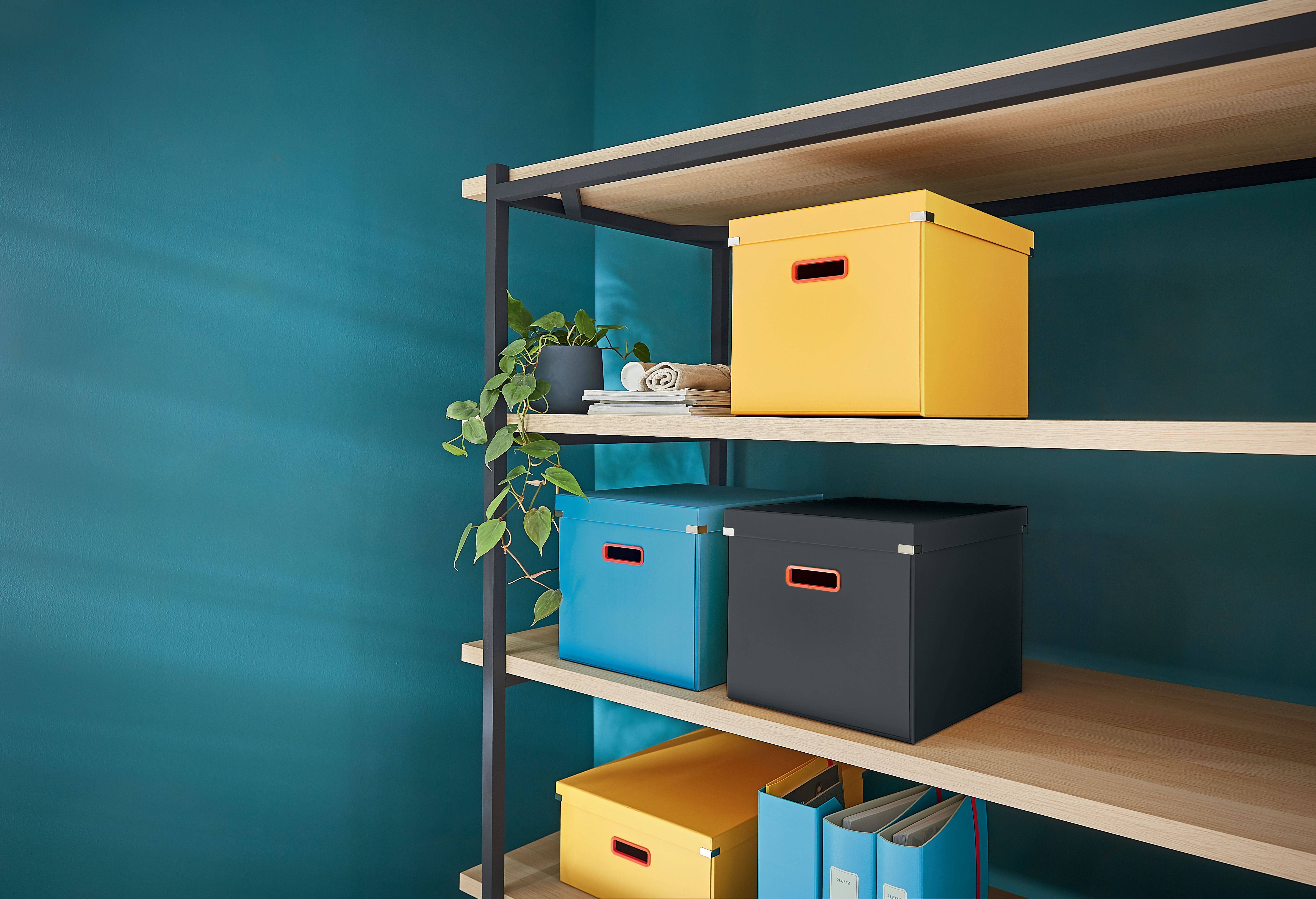 "Rangez vos affaires de manière ordonnée et sûre avec cette jolie boîte de rangement et de transport Leitz Click & Store Cosy Cube. Cette boîte pliable en carton rigide de qualité supérieure avec couvercle est parfaite pour ranger documents, classeurs, dossiers, papeterie, magazines, catalogues, livres, jouets, jeux, vêtements et autres petits objets.