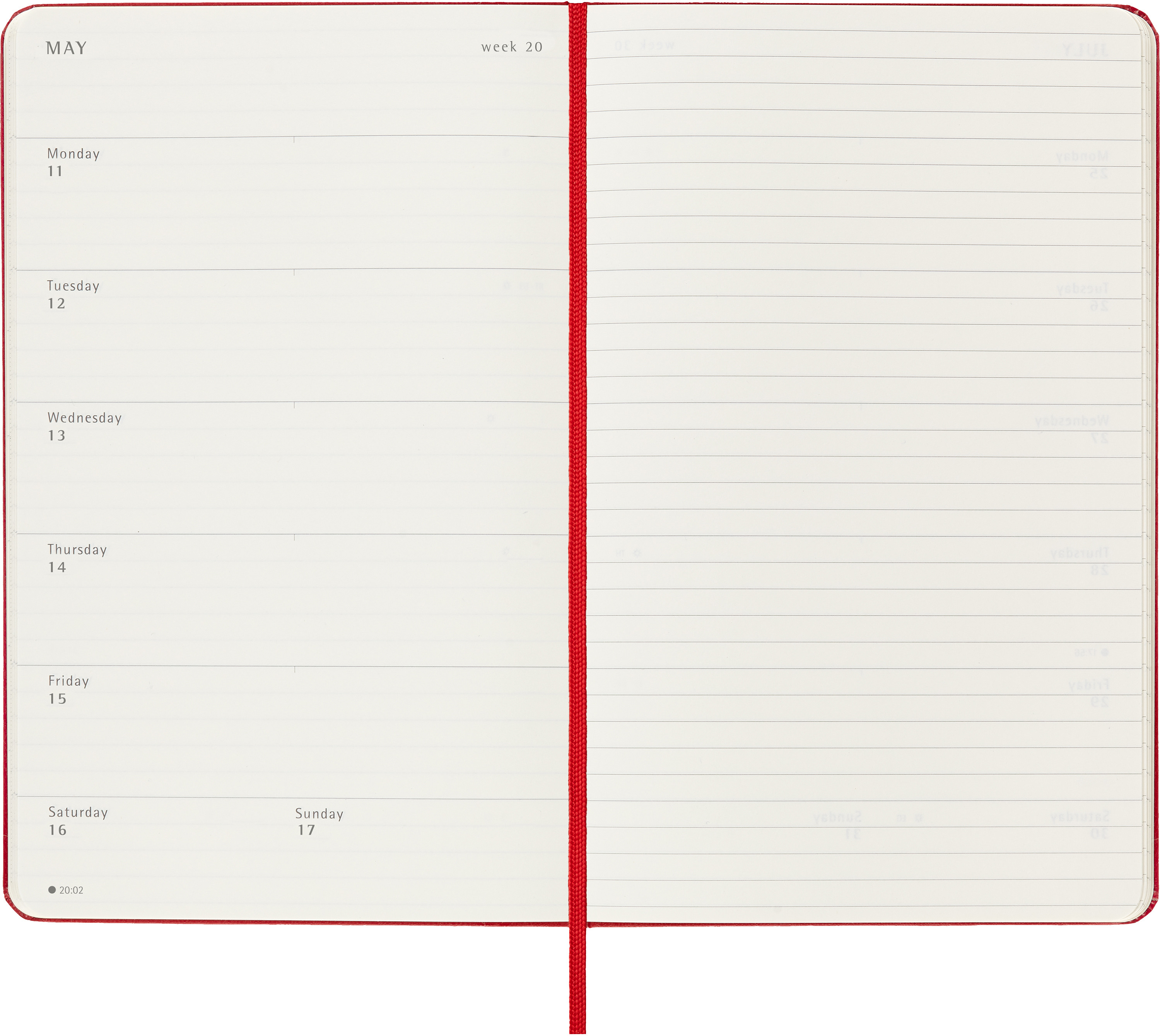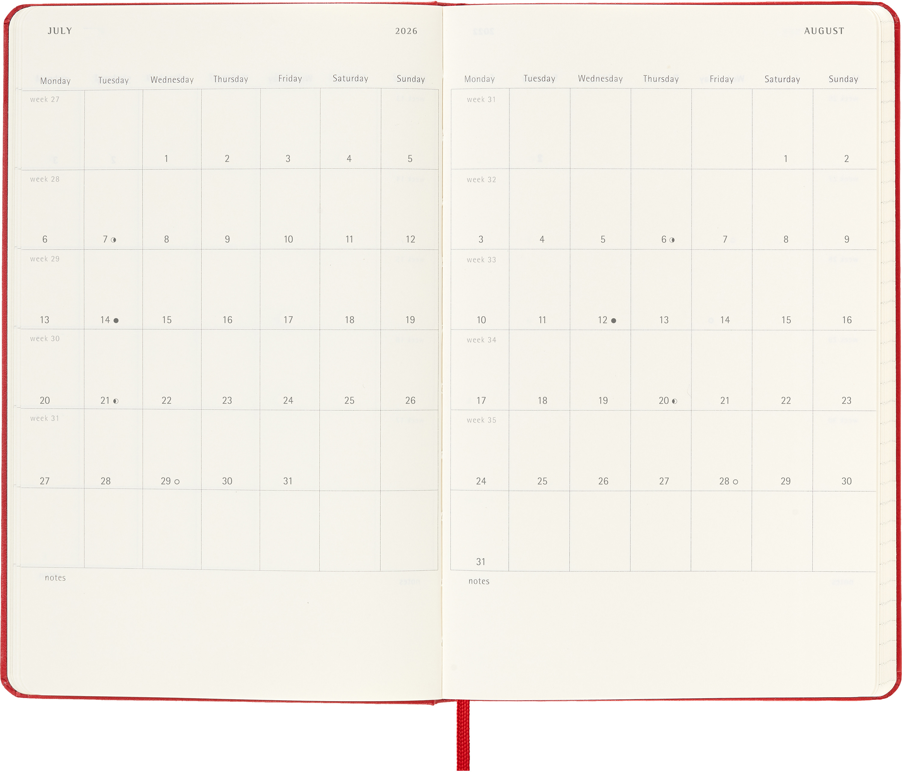 L'agenda hebdomadaire 18 mois de Moleskine va de juillet à décembre. Avec les rendez-vous de la semaine sur la page de gauche et une page lignée à droite avec de la place pour les notes et les idées, ce type de calendrier très apprécié est parfait pour les étudiants, les enseignants et les hommes d'affaires.