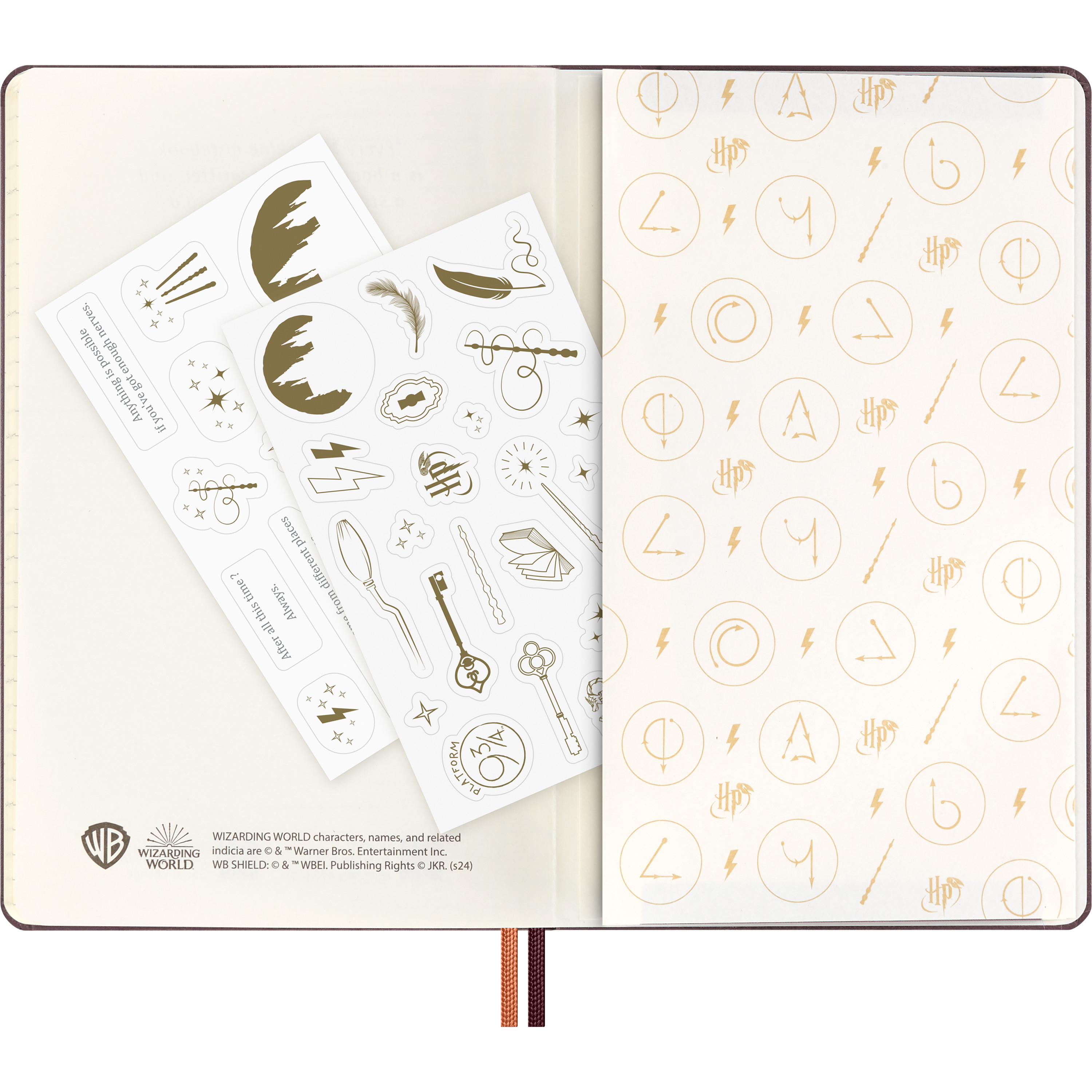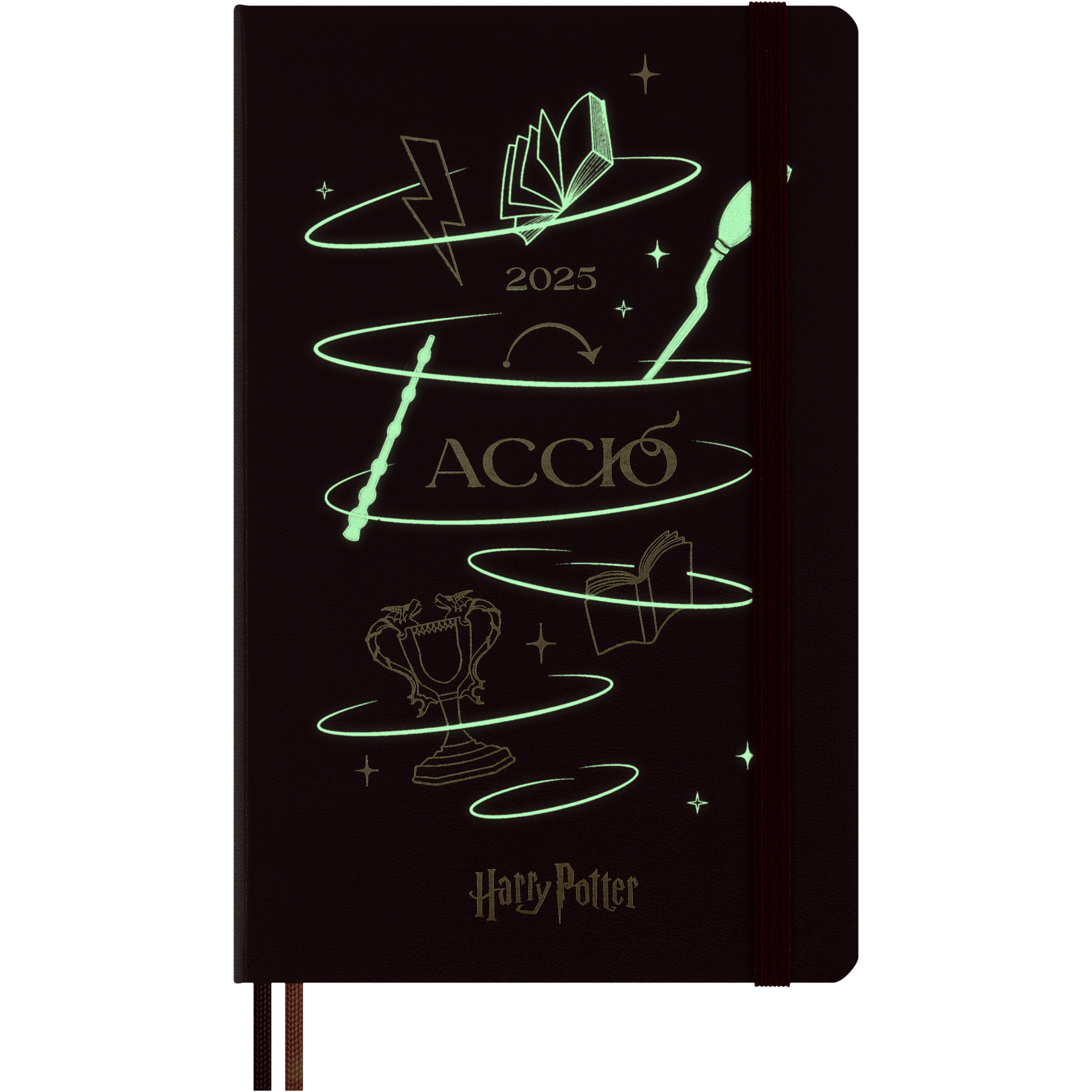 Remplissez de magie chaque jour de l'année à venir avec ce calendrier de 12 mois. Cette édition limitée possède une couverture qui brille dans le noir et une citation mémorable de l'histoire à l'intérieur. Feuilletez les pages pour découvrir les dates importantes du monde des sorciers et attrapez votre stylo préféré pour vous entraîner à faire des mouvements de baguette magique avec les pages de garde thématiques. <br><br>Ce calendrier Harry Potter est daté de janvier à décembre 2024 et présente une mise en page quotidienne avec une page entière par jour. Vous disposez ainsi de l'espace nécessaire pour noter tous les rendez-vous et les tâches de la journée, ainsi que des notes, des rappels et des suggestions aléatoires. La première partie contient un calendrier et des pages pour la planification et l'organisation des voyages. <br><br>Chaque calendrier et carnet de cette collection est accompagné d'une formule magique qui évoque un moment emblématique de l'histoire. Depuis les débuts timides avec Wingardium Leviosa jusqu'à Protego Maxima et le chapitre final épique. Dans le monde des sorciers, un sortilège est une formule qui libère une puissante magie - mais pour les fans de Harry Potter, les sortilèges familiers évoquent des souvenirs, des émotions et de l'inspiration. <br><br>Mais l'expression personnelle avec un stylo et du papier est au fond la vraie magie. Ce calendrier vous rappelle chaque jour que l'écriture manuscrite des projets est la première étape pour les concrétiser !<br><br>© WBEI (s24)