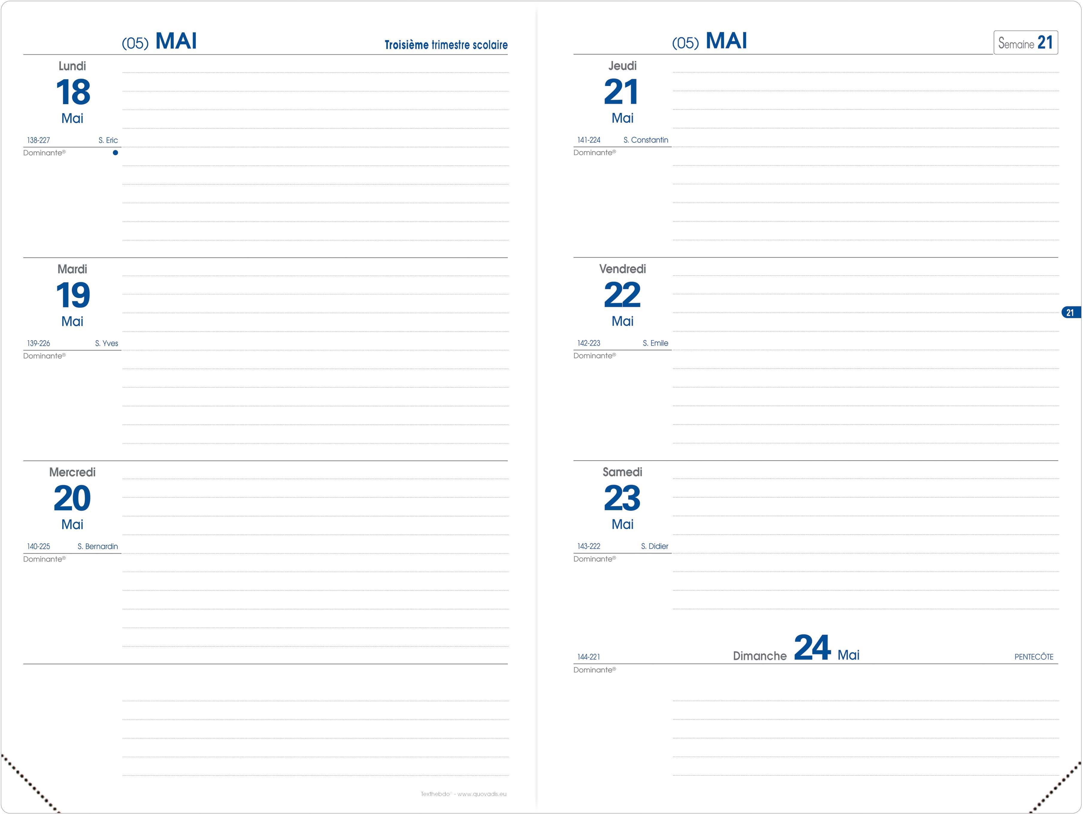 Agenda sobre avec couverture amovible et coins détachables pour une orientation facile.