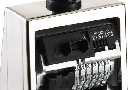Le tampon numéroteur, modèle B6, ne doit manquer dans aucun bureau. Ce folioteur compte et estampille automatiquement une numérotation séquentielle sur les documents. Les molettes à tampon encreur fabriquées en métal sont disponibles en plusieurs polices.