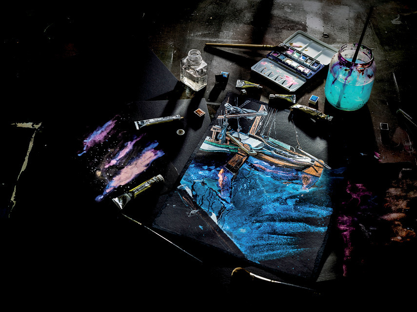 Le papier Rembrandt a été spécialement conçu pour les peintres professionnels. Il est exempt d'acide pour que le travail reste en bon état pendant des années. Bloc d'aquarelle noir.