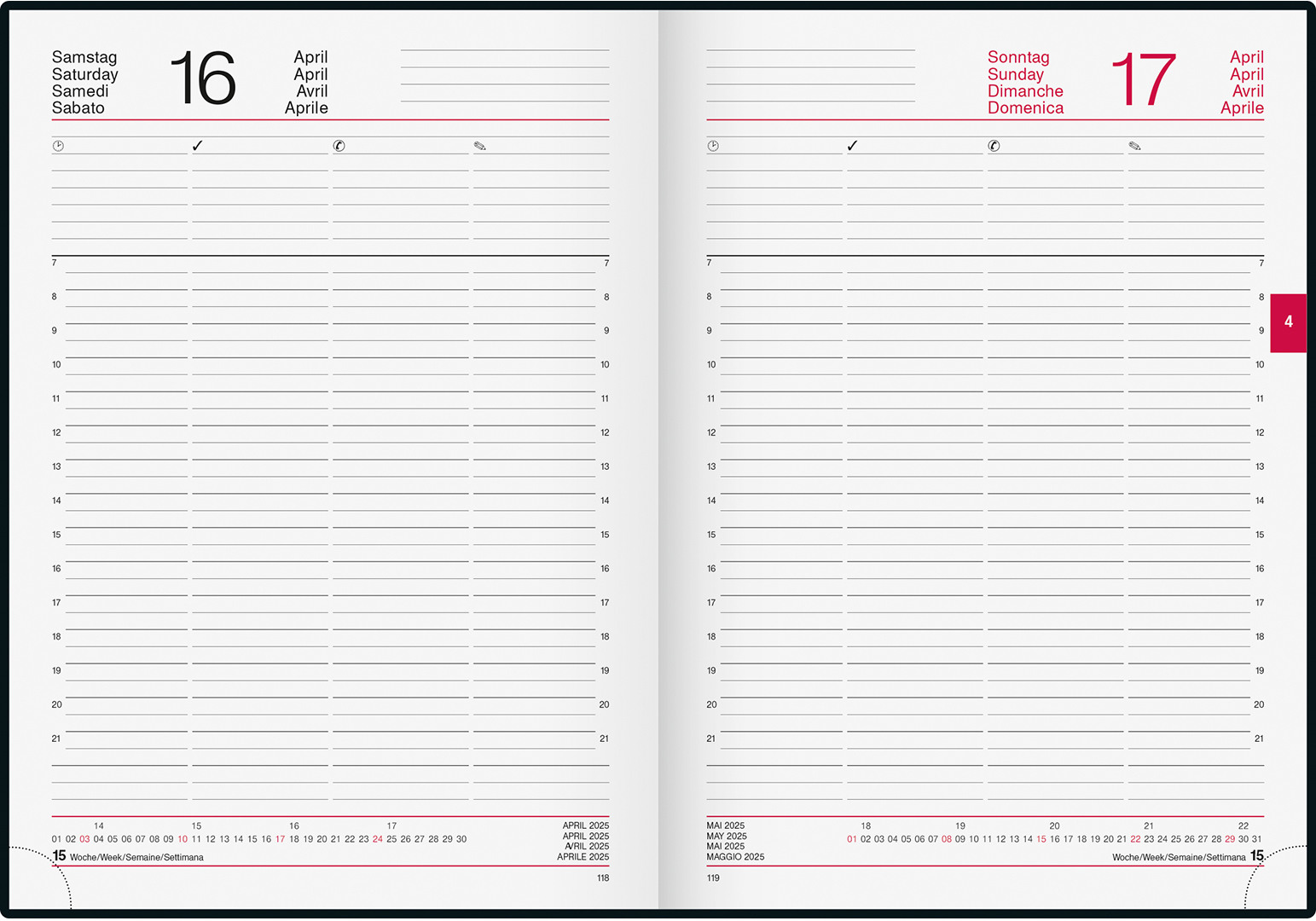 RIDOIDE Agenda hebdo. Design Line 2025 021507015.25 1S/2P Shadows DE 14.8x21cm