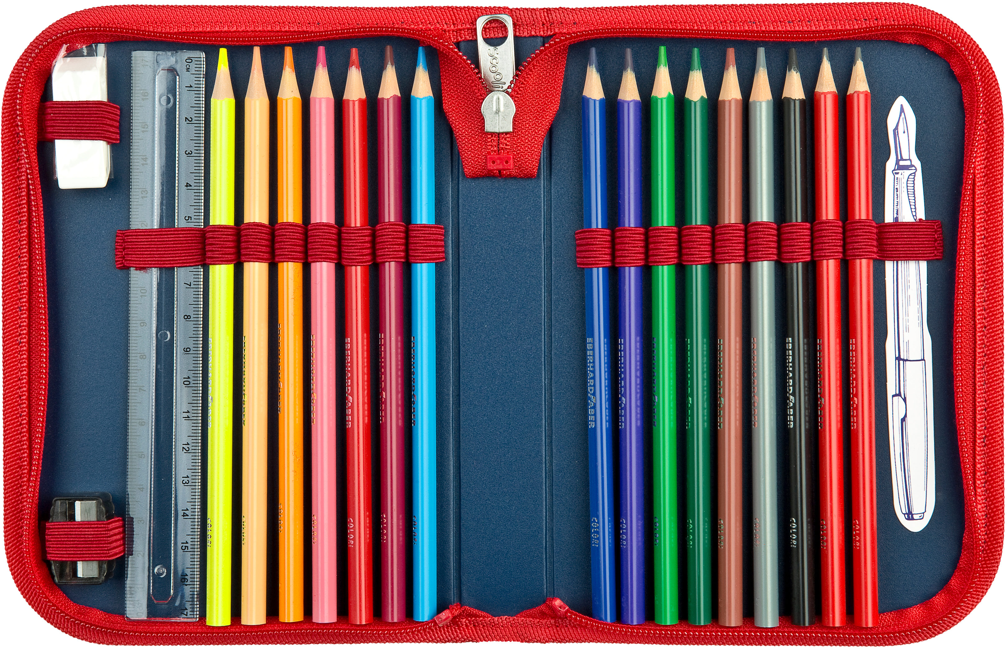 Set composé de : Cartable (effet : Silkscreen Print, poids env. 1.000 gr., volume env. 18 litres, sangle de poitrine amovible, dos ergonomique rembourré, sangle de poitrine, surfaces réfléchissantes, serrure magnétique, etc.), porte-clés, sac à chaussures, trousse d'écolier avec remplissage Eberhard Faber en polyester, 1 pièce dans un sac en polyéthylène