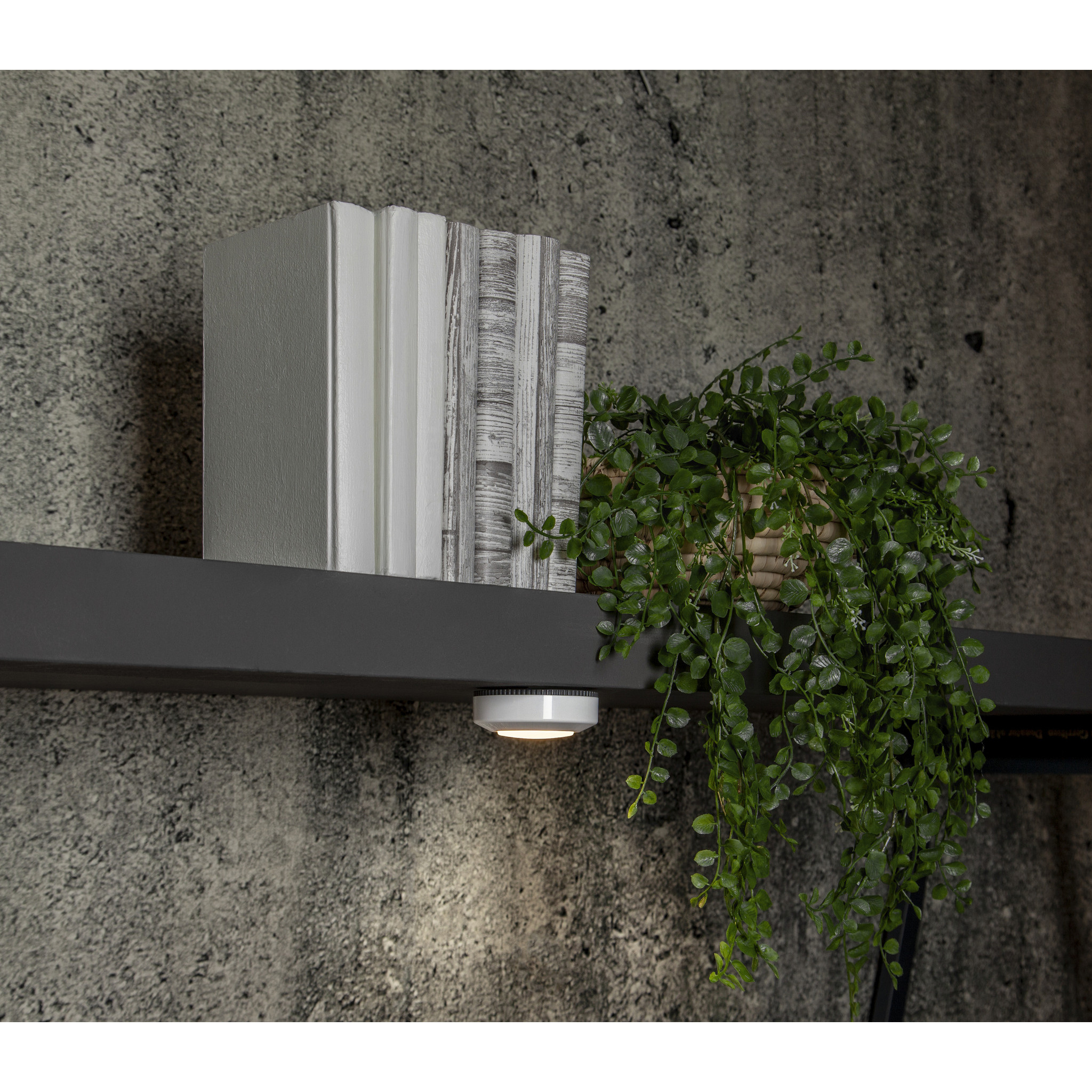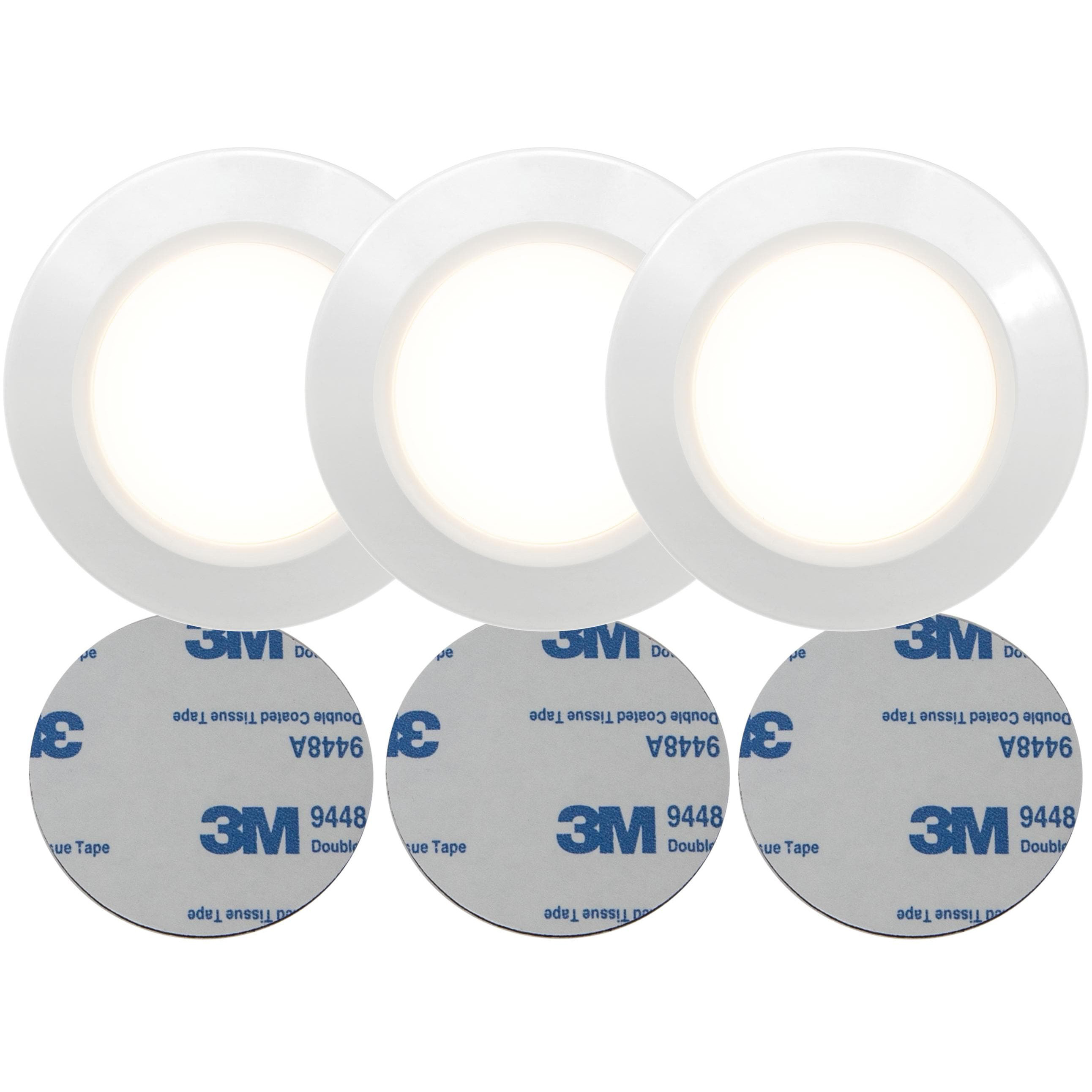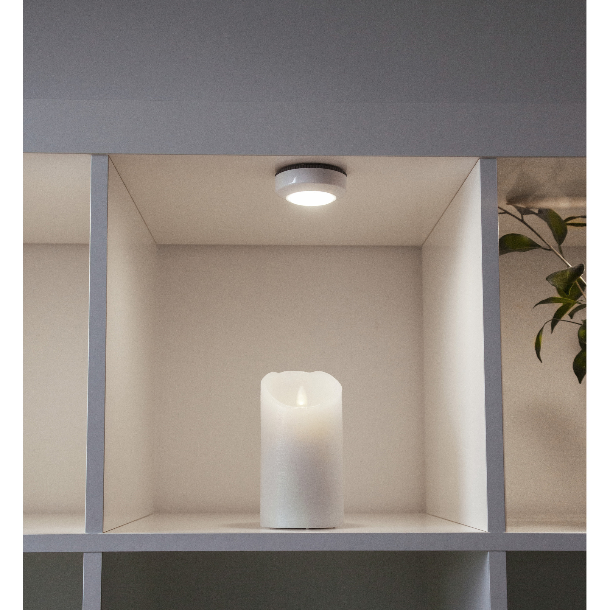 Paquet de 3 LED Puck, parfait pour les penderies, les rangements et autres coins sombres où vous avez besoin d'un peu plus de lumière • fonction push intégrée pour allumer la lampe • il suffit d'appuyer au centre • la fixation de la lampe se fait grâce à l'adhésif autocollant au dos • fonctionne avec 3 piles AAA (non incluses)