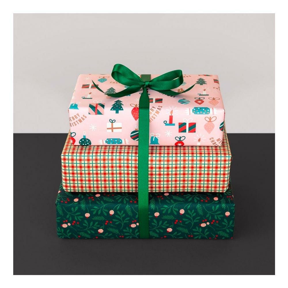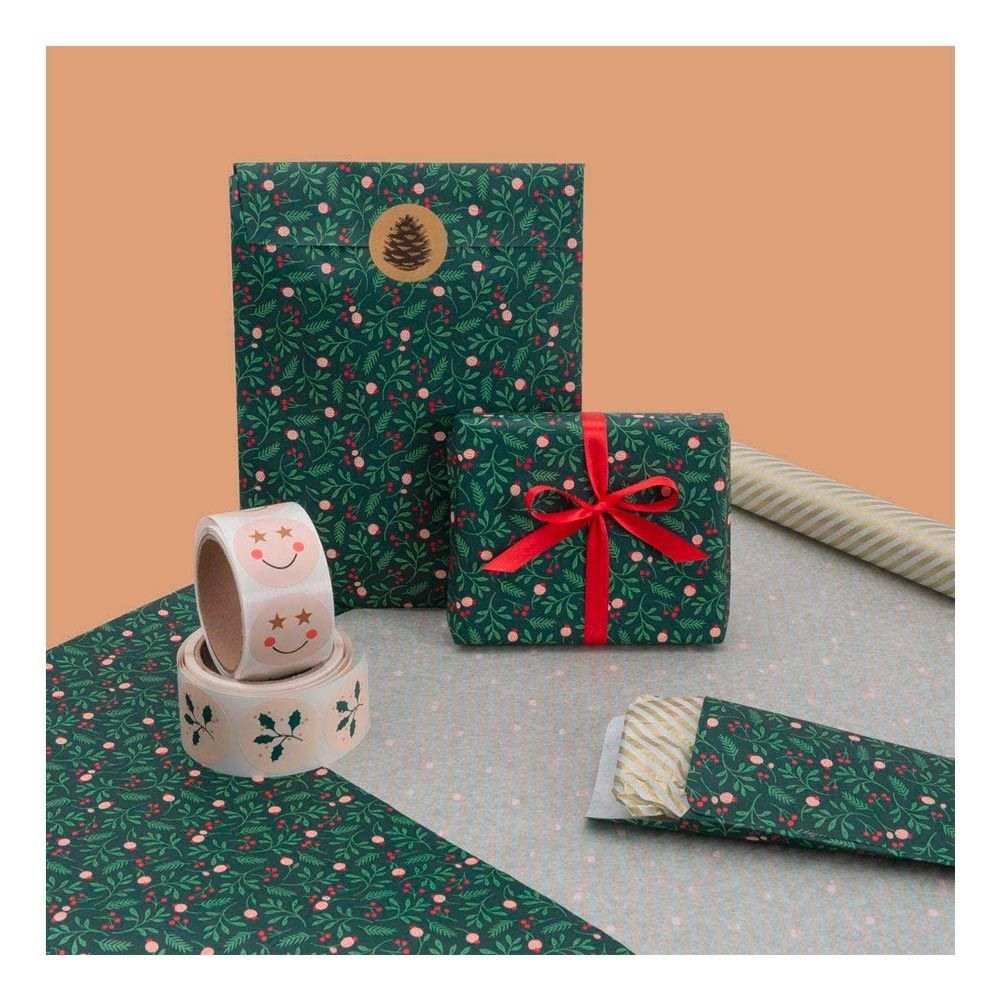 La feuille de papier cadeau avec fleurs et plantes est idéale pour emballer les cadeaux directement au point de vente. Les feuilles individuelles sont découpées aux dimensions 70 x 100 cm et peuvent être utilisées pour des cadeaux de différentes tailles. Les feuilles se distinguent par leur matériau stable de haute qualité et leur design Swiss Made. Cet univers thématique traditionnel est une ligne de cadeaux ludique dans laquelle les symboles de Noël sont mis en scène de manière moderne. Les couleurs sont classiques : vert sapin et rouge chaud pour une période de l'Avent propice à la réflexion.