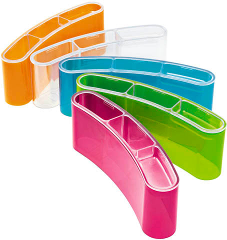 Porte-crayon styropen en forme arquée et à la couleur tendance - un vrai accroche-regard sur votre table. Insert transparent avec 3 compartiments de différente profondeur pour instruments à écrire, feuillets adhésifs, attache-lettres, etc.