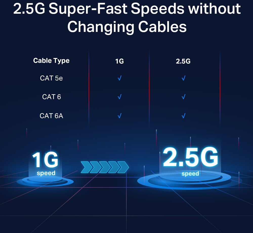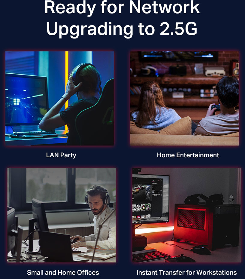 - Connexions super rapides . Offre des connexions ultra-rapides aux NAS 2.5G, serveurs 2.5G, ordinateurs de jeu, AP WiFi 6 2.5G, vidéo 4K et plus encore.