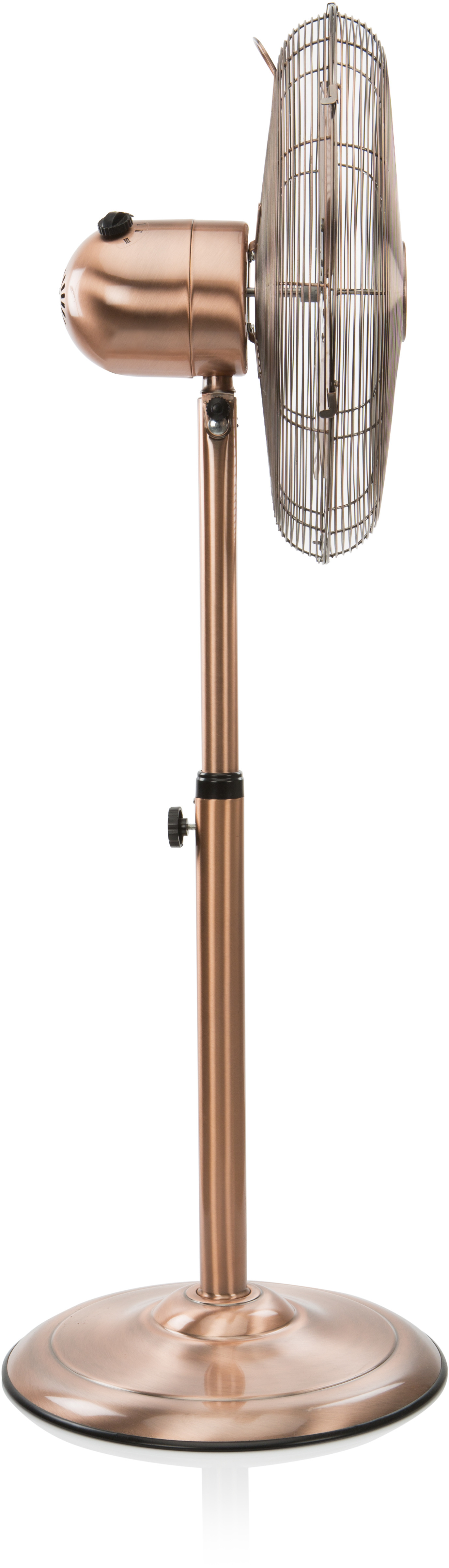Le ventilateur sur pied de Tristar assure une fraîcheur même pendant les chaudes journées d'été. L'air frais est produit par un moteur à la fois puissant et silencieux de 50 watts et une roue de ventilateur de 16 pouces de diamètre. Pour que vous puissiez régler un flux d'air qui vous convient, vous disposez de trois niveaux de puissance. Que ce soit dans une ambiance rétro ou dans un intérieur moderne, le ventilateur métallique rétro s'intègre parfaitement avec son aspect cuivré. Grâce au commutateur rotatif situé à l'arrière du ventilateur, le ventilateur sur pied Tristar se commande sans effort. Choisissez un flux d'air agréable pour vous et votre environnement parmi les trois réglages différents. Grâce à son cadre métallique d'aspect cuivre, le ventilateur est robuste et solide. Grâce à son design rétro, le ventilateur sur pied s'intègre parfaitement dans tous les styles rétro ou dans un intérieur moderne. Le ventilateur sur pied Tristar est solidement fixé sur n'importe quelle surface grâce à son socle extra-large avec fond antidérapant. Avec un flux d'air pivotant à 85 degrés, l'air frais atteint une grande partie de la pièce. Le flux d'air est également réglable verticalement. Un mécanisme rotatif permet de régler la hauteur du ventilateur entre 85 et 125 centimètres. Réglez un flux d'air agréable pour vous et votre environnement. Pour cela, vous disposez de trois réglages différents du flux d'air.