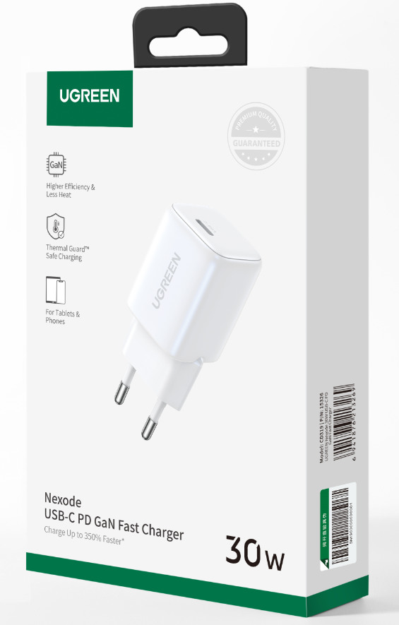 Le Pro offre plus : avec la puce GaN II super rapide - spécialement conçue pour la série Nexode - vous obtenez une puissance révolutionnaire et une taille incroyable. Le chargeur USB C Ugreen Nexode 30W GaN II peut recharger votre iPhone 14 Pro Max de 0 à 55% en seulement 30 minutes. 3x plus rapide que les chargeurs normaux. Petit et puissant : le mini-connecteur Nexode 30 W utilise un matériau de haute qualité avec une longueur réduite et des coins élégamment arrondis. Avec son design minuscule, le bloc d'alimentation Nexode 30 W prend 55% de place en moins. Facile à glisser dans la poche et à emporter partout.