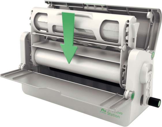 Système à cassettes patenté pour un changement simple des rouleaux de poches de la CREATIVE STATION.